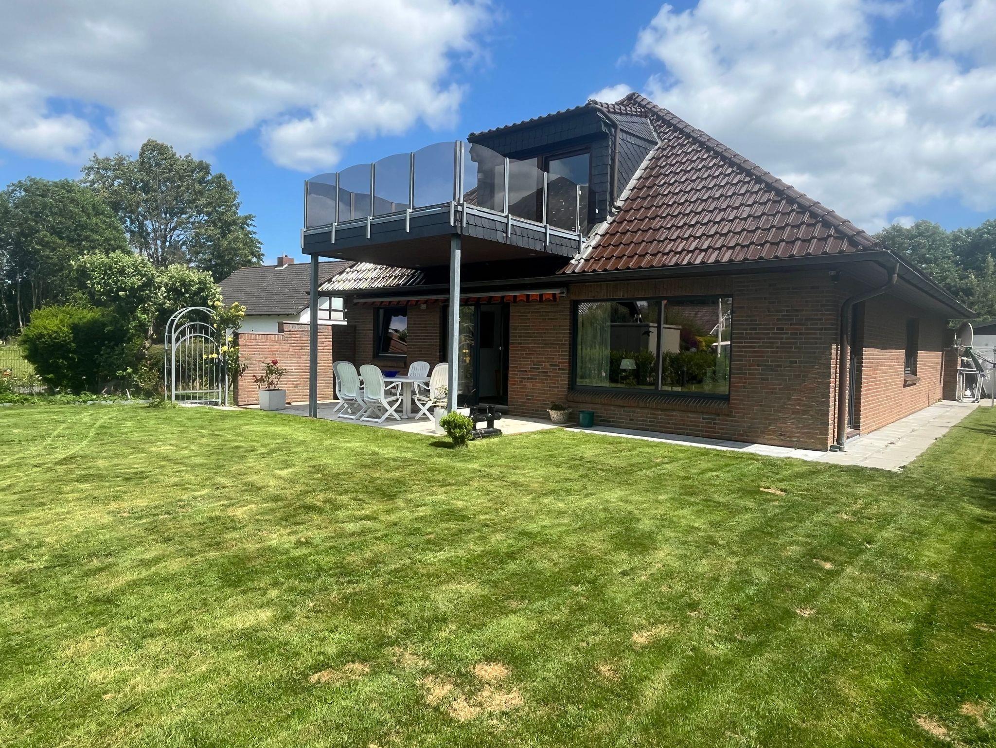 Die abgeschlossene Wohnung im Erdgeschoß verfügt über 120 qm hat 3 Schlafzimmern und bietet 5 Gästen Platz.