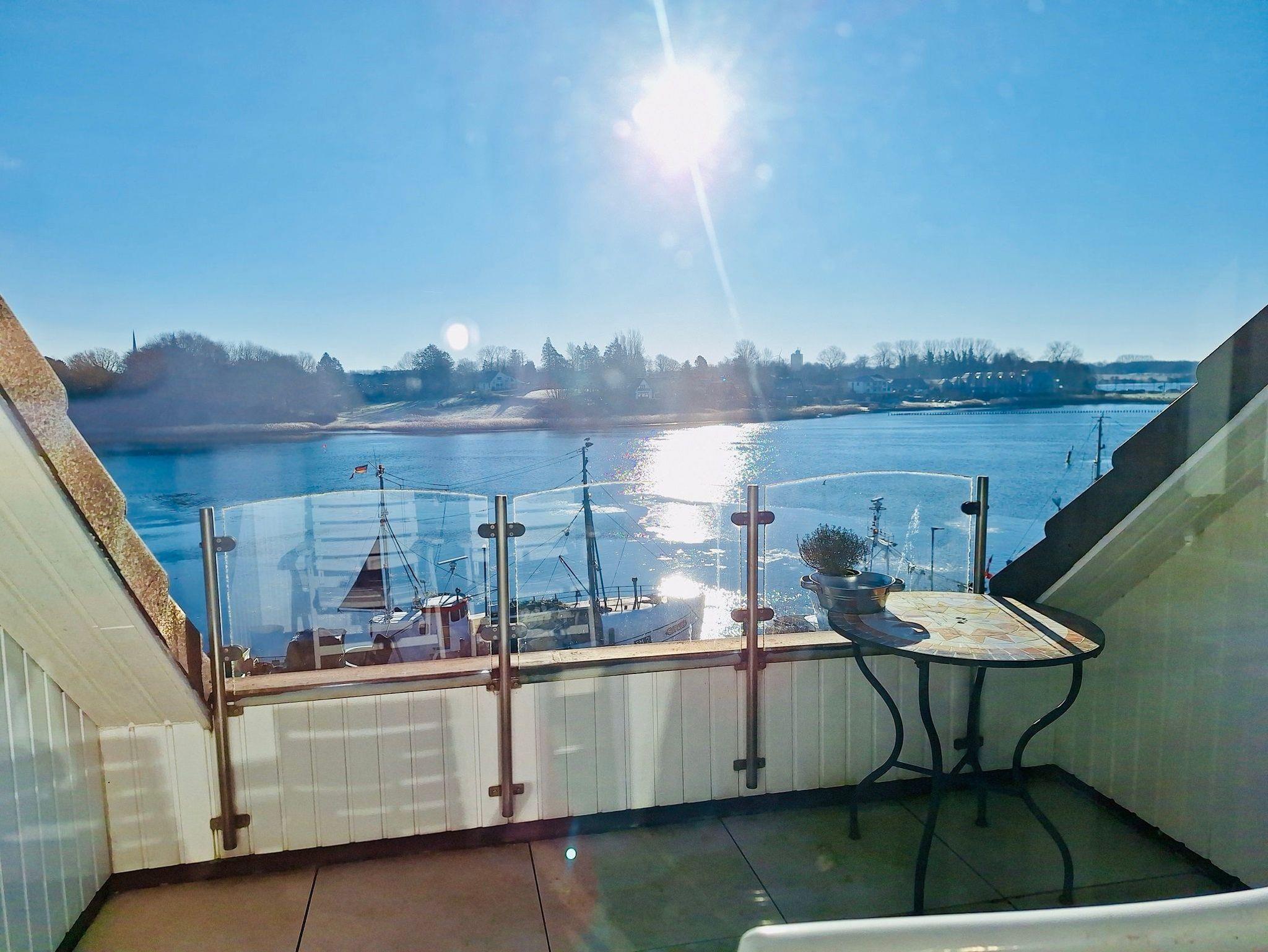 Die Ferienwohnung ist geschmackvoll, modern möbliert. In der voll ausgestatteten Küche finden Sie alles, was Sie für einen angenehmen Aufenthalt benötigen. Durch das Panoramafenster im Wohnzimmer haben Sie schon morgens am Frühstückstisch einen herrlichen Blick über den Hafen, die Schlei und die Schleibrücke. Bei gutem Wetter können Sie Ihre Mahlzeiten auch auf der Loggia einnehmen. Die elektronische Markise spendet Schatten, ohne den Blick auf die Schlei und den malerischen Fischereihafen zu verbergen. Erholsamen Schlaf finden Sie im behaglich eingerichteten Schlafzimmer. Das Kingsize Bett ist mit hochwertigen Matratzen ausgestattet. Für genügend Stauraum befindet sich hier ein großer Einbaukleiderschrank und eine große Kommode. Zusätzlichen Stauraum finden Sie in einem extra Raum, in dem sich auch die Garderobe befindet. Das Tageslichtbad mit Dusche ist mit einer Waschmaschine ausgestattet.