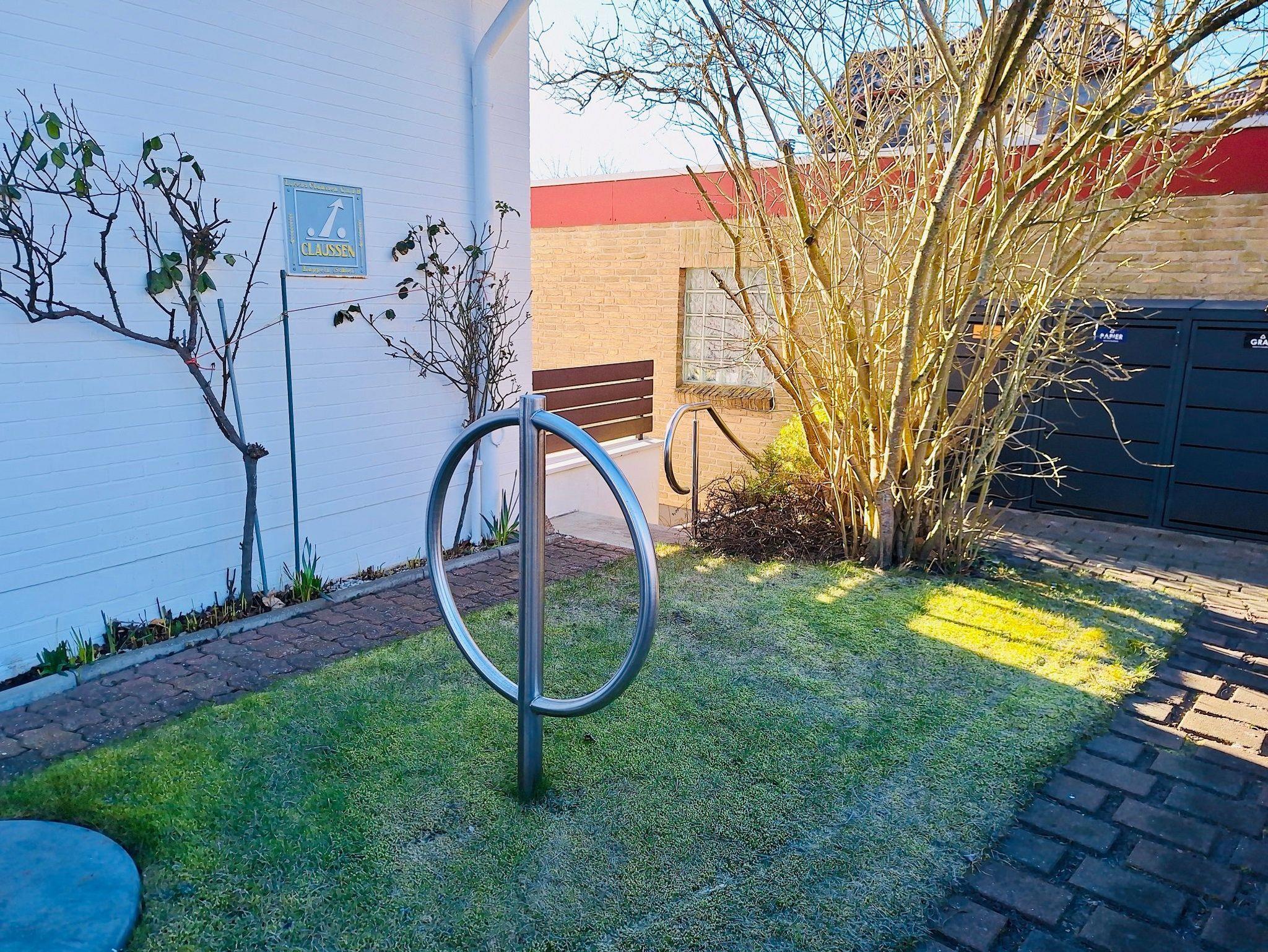 Auf der gegenüberliegenden Straßenseite befinden sich zwei Parkmöglichkeiten für Ihr Auto. Zusätzlich stehen Ihnen in 20 Meter Entfernung weitere Parkmöglichkeiten zur Verfügung. Der Vorgarten des Hauses ist durch eine Hecke und eine Pforte vom Gehweg getrennt. Dort befindet sich ein Ständer für Ihre Fahrräder.