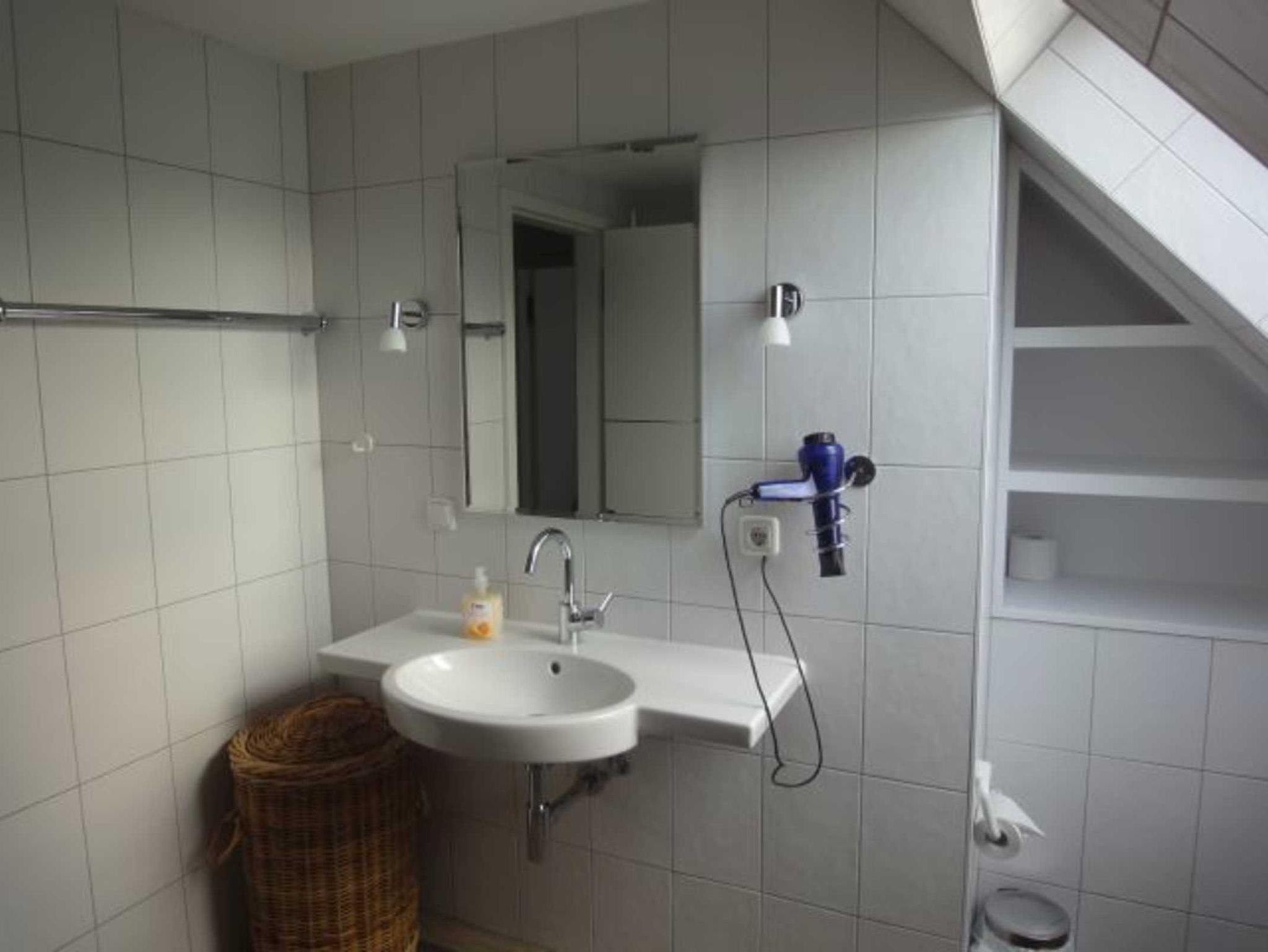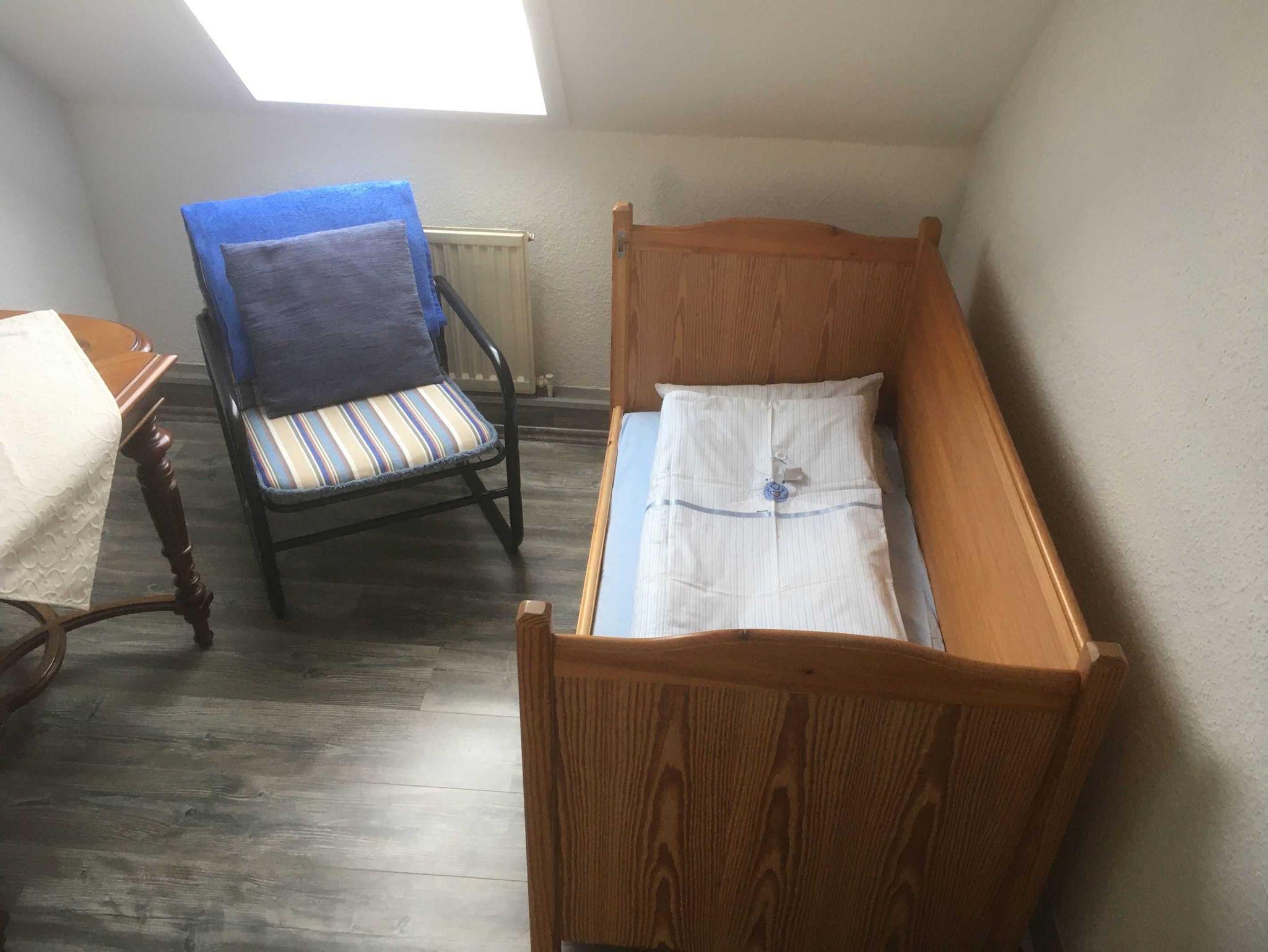 In der ersten Etage befinden sich zwei Schlafräume mit jeweils einem Doppelbett und einem kleinen Zimmer mit einem Kinderbett , ein Duschbad mit WC.