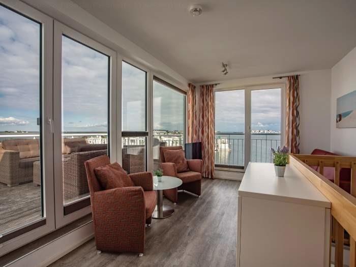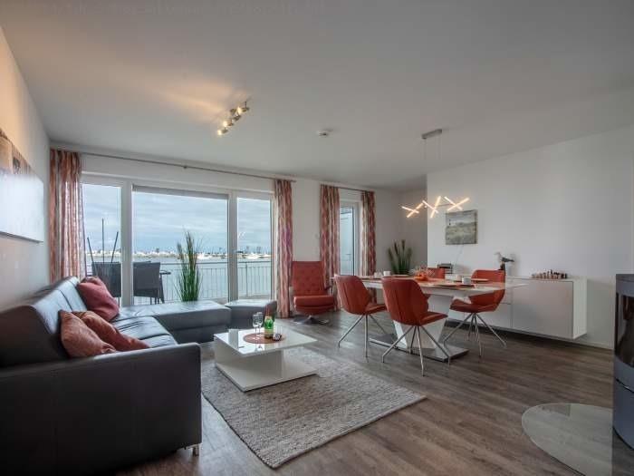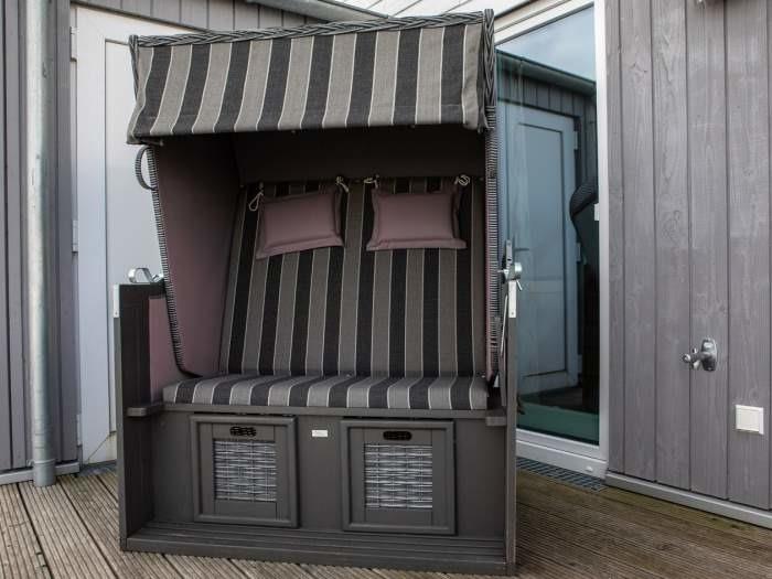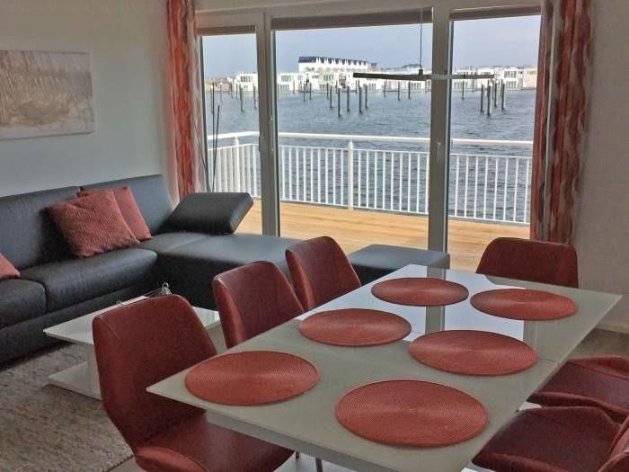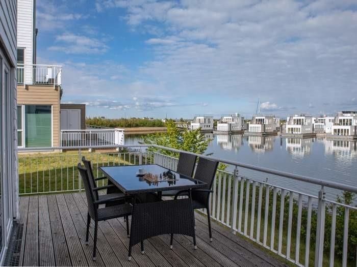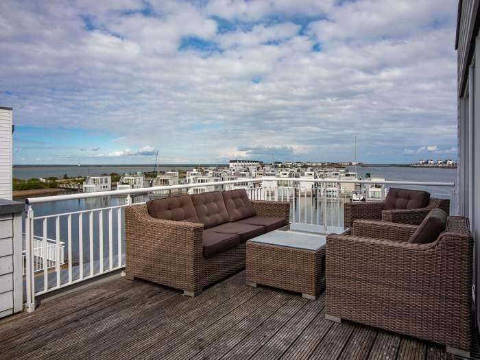Das Ferienhaus liegt im Resort direkt an der Westmole und bietet mit seinen bodentiefen Fenstern einen tollen Ausblick über den Hafen und die Schlei. Das Haus hat drei Etagen inklusive einer Galerie. Es ist mit einer Terrasse, Dachterrasse, Kamin und Sauna sowie Whirlpool luxuriös ausgestattet. Bis zu 7 Gäste finden heir in zwei Schlafzimmern, eines mit Doppelbett und eines mit zwei Einzelbetten und auf zwei Schlafcouches Platz. Es gibt zwei Bäder, die jeweils mit einer Dusche ausgestattet sind.