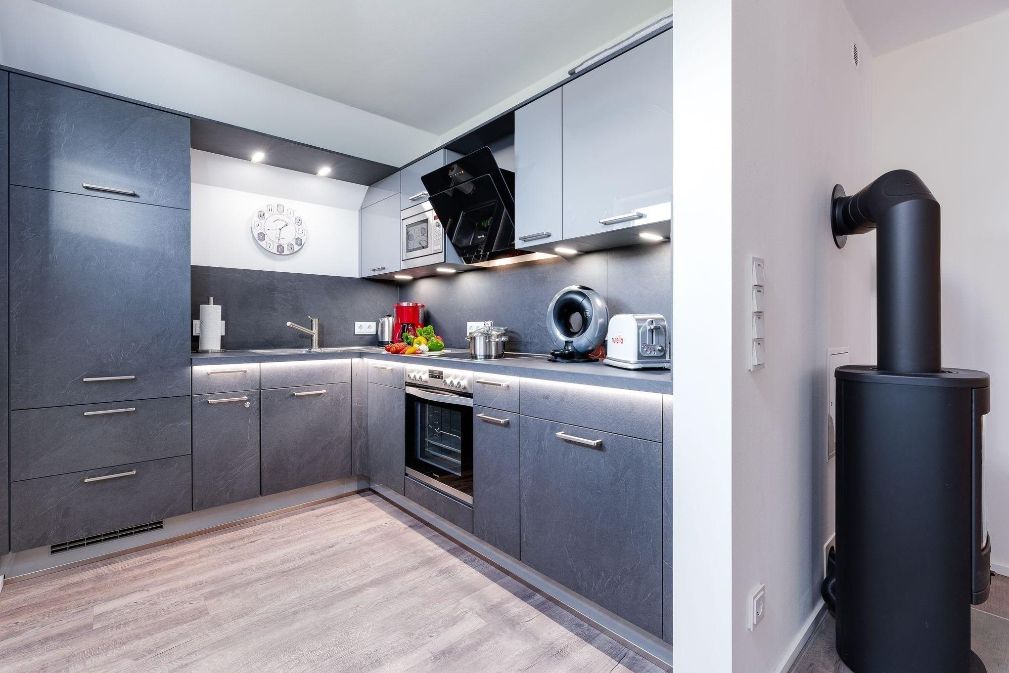 Die gesamte Ferienwohnung lässt sich über die Fußbodenheizung einfach temperieren und bietet dank des Kaminofens und der Sauna das ganze Jahr über eine angenehme Wärme und eine gemütlich-wohlige Atmosphäre. Für Unterhaltung sorgen im Wohnbereich ein 42 Zoll Smart TV mit Bluetooth, USB Mediaplayer und eine Musik-Anlage mit Wlan / Bluetooth-Empfänger sowie eine Spielesammlung. Darüber hinaus verfügt die Wohnung über einen Pkw-Stellplatz mit Elektroladesäule für Ihr Elektroauto direkt am Haus.
