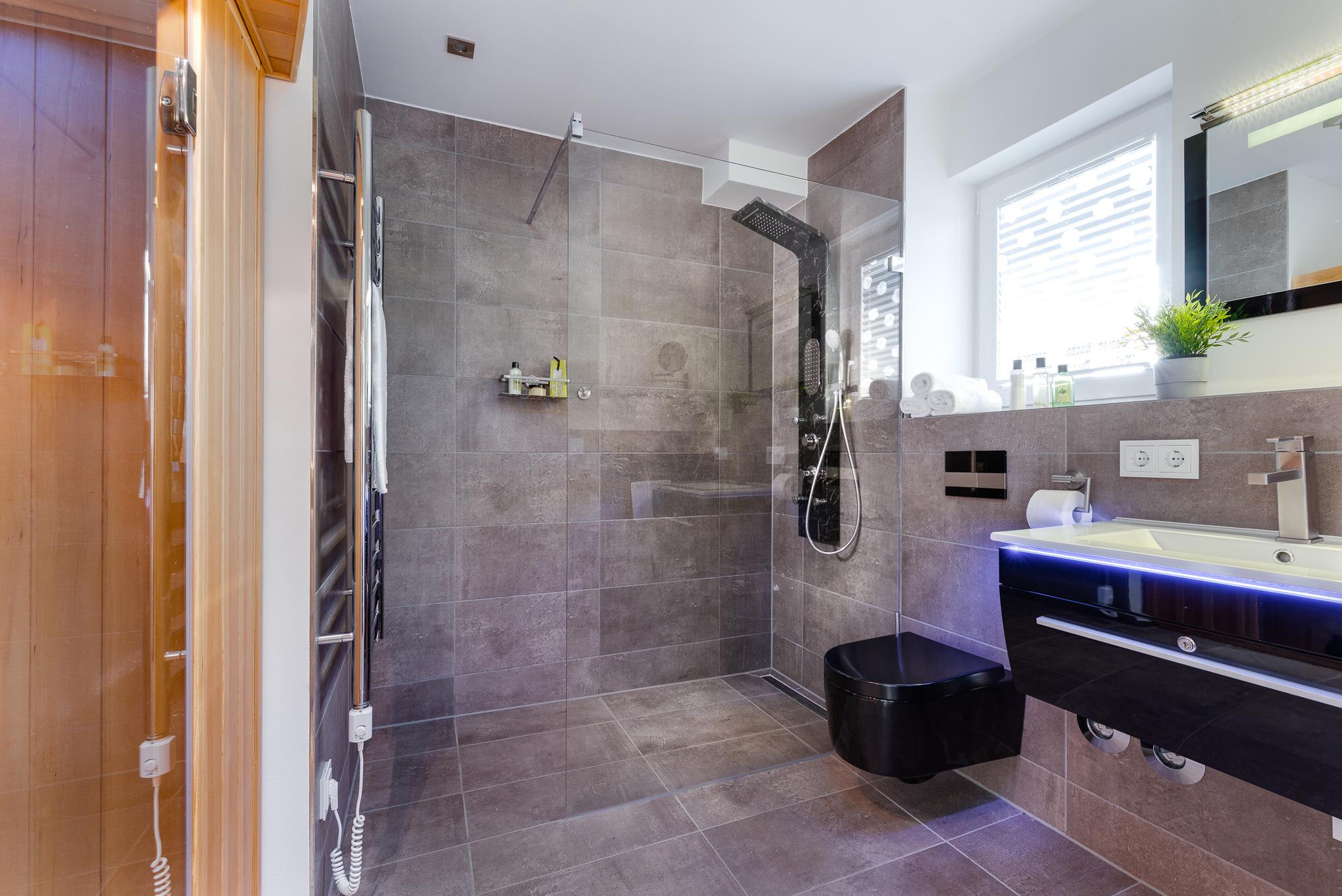 Bei dieser Ferienwohnung sind spektakuläre Sonnenlichtspiele durch die zwei Balkone in Süd- und Westausrichtung zu erwarten. Der Einrichtungsstil entspricht der exklusiven Lage der Ferienwohnung: Klare Farben und Formen, sowie der Einsatz natürlicher Materialien, versprechen Ruhe und Rückzug, während einzelne Farbakzente für erfrischende Leichtigkeit sorgen. Die gesamte Ferienwohnung lässt sich über die Fußbodenheizung einfach temperieren und bietet dank des Kaminofens und der Sauna das ganze Jahr über eine angenehme Wärme und eine gemütlich-wohlige Atmosphäre. Für Unterhaltung sorgen im Wohnbereich ein 42 Zoll Ultra HD Smart TV, Musik-Anlage mit WLAN und Bluetooth-Empfänger, Bücher sowie eine Spielesammlung. Darüber hinaus verfügt die Wohnung über einen kostenlosen Pkw-Stellplatz mit E-Ladesäule, für ein Elektroauto direkt am Haus.