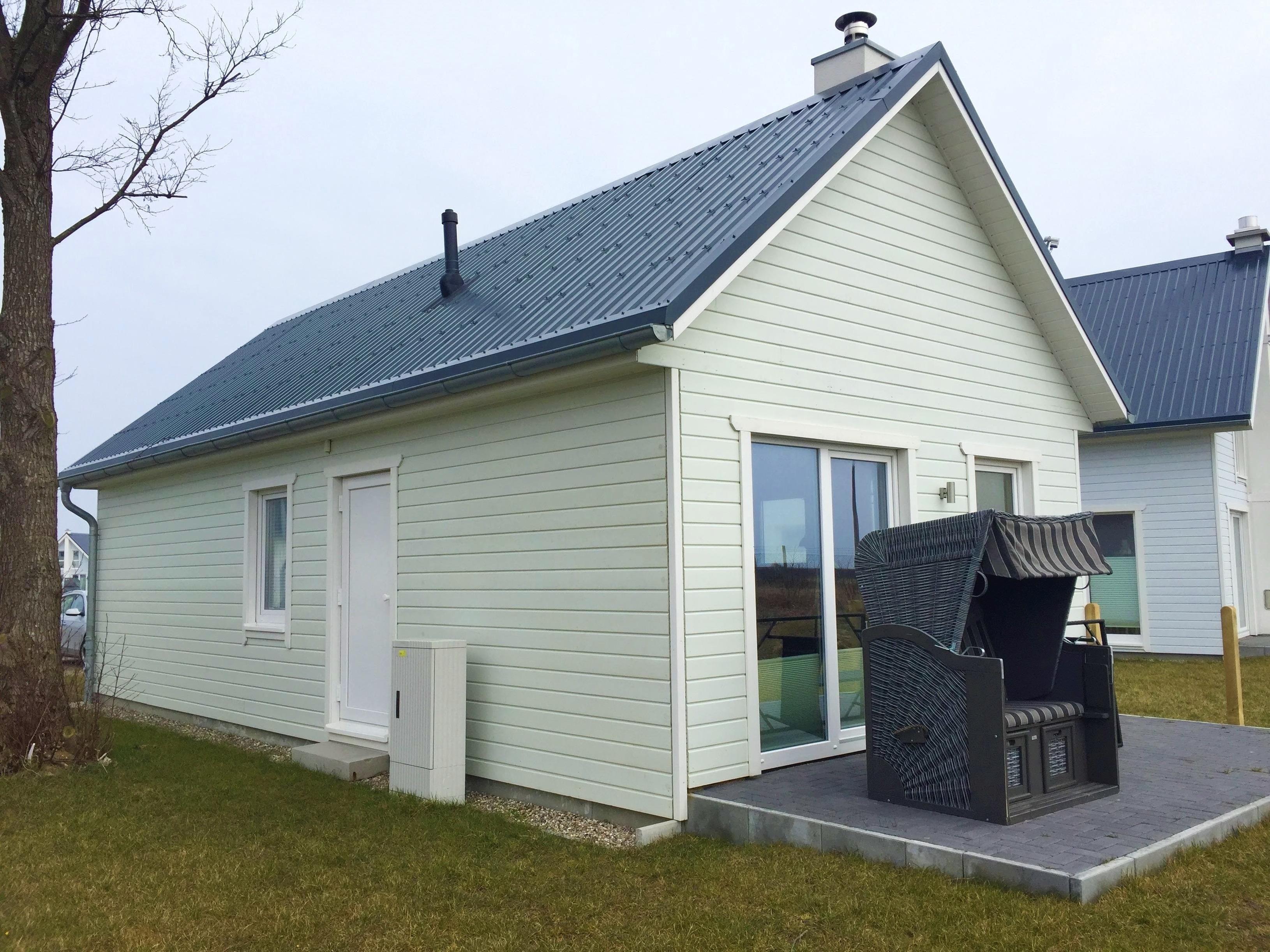 Ein eigenes Haus für die kleine Familie: Auf behaglichen 48 qm Wohn- und Nutzfläche bietet dieses kleine freistehende Ferienhaus einen lichtdurchfluteten Wohn-/Essbereich mit hochwertiger integrierter Küche, einen Kamin, ein Schlafzimmer mit bequemen Boxspringbett und ein großes Duschbad mit Sauna, und die kleine vorgelagerte Südwest-Terrasse läßt den ganzen Tag Zeit, um gemütlich im eigenen Strandkorb die Sonne zu genießen. Das Haus ist ideal für 2 Personen, mit der Schlafcouch im Wohnzimmer aber ggf. auch für bis zu 3 oder 4 Personen geeignet.