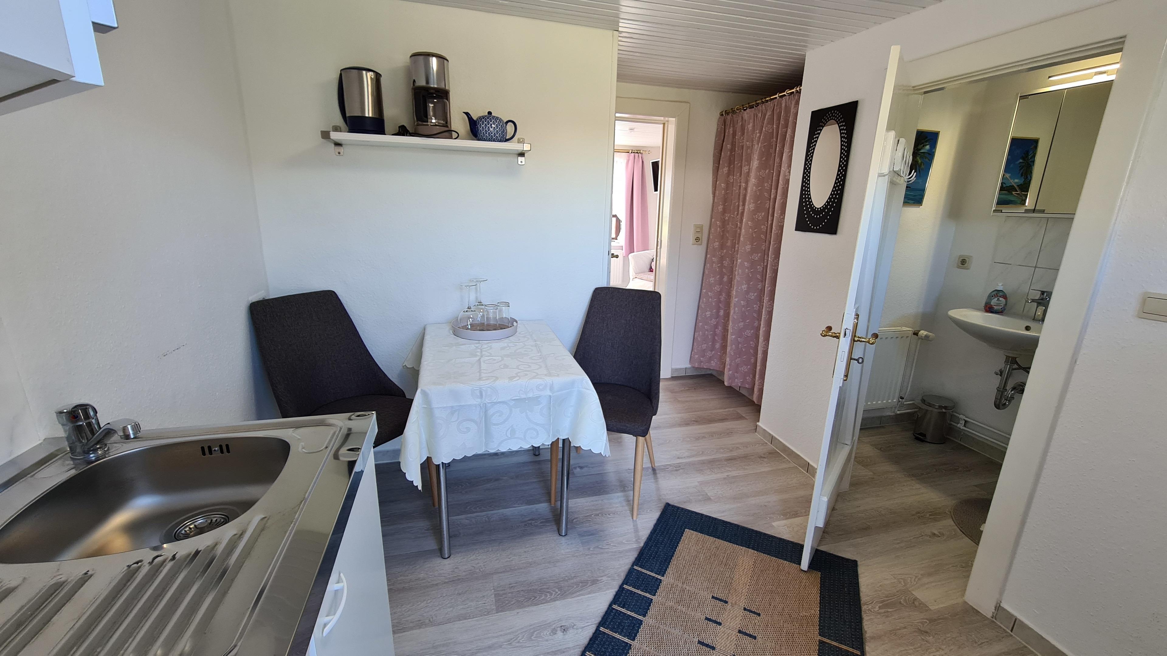 Ihr Zimmer / Appartement ist für Sie frisch bezogen, so können Sie Bettwäsche und Handtücher Zuhause lassen. Die Appartements mit Pantryküche haben ein Doppelkochfeld, Kühlschrank, Spüle und sind ausgestattet mit Geschirr, Gläsern, Besteck und Kochutensilien.