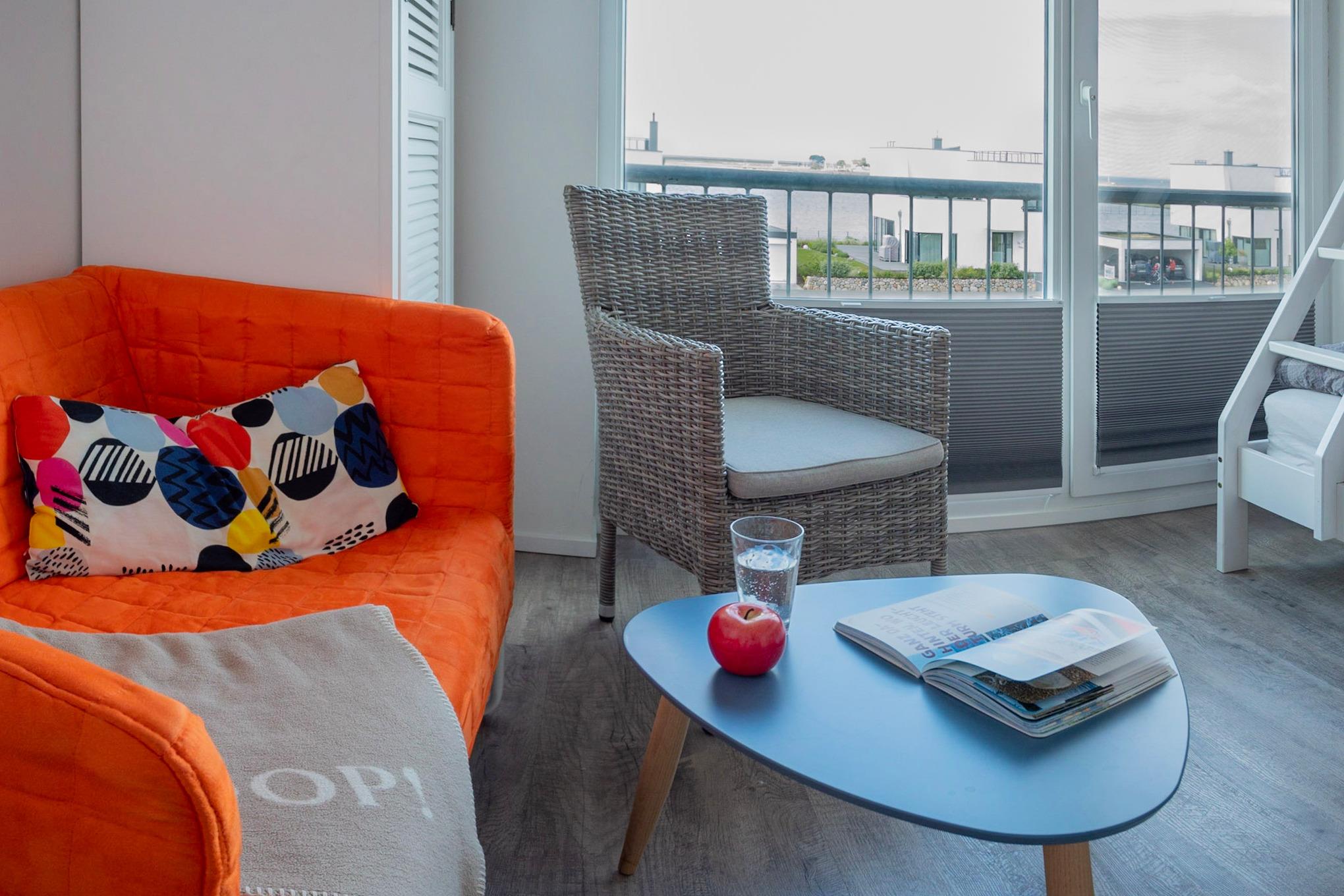 Bei dieser Wohnung sind spektakuläre Sonnenlichtspiele durch die zwei Balkone in Süd- und Nordausrichtung zu erwarten. Der Einrichtungsstil entspricht der exklusiven Lage der Ferienwohnung: Landhausstil gepaart mit klaren Farben und Formen versprechen Ruhe und Rückzug, während einzelne Farbakzente für erfrischende Leichtigkeit sorgen.