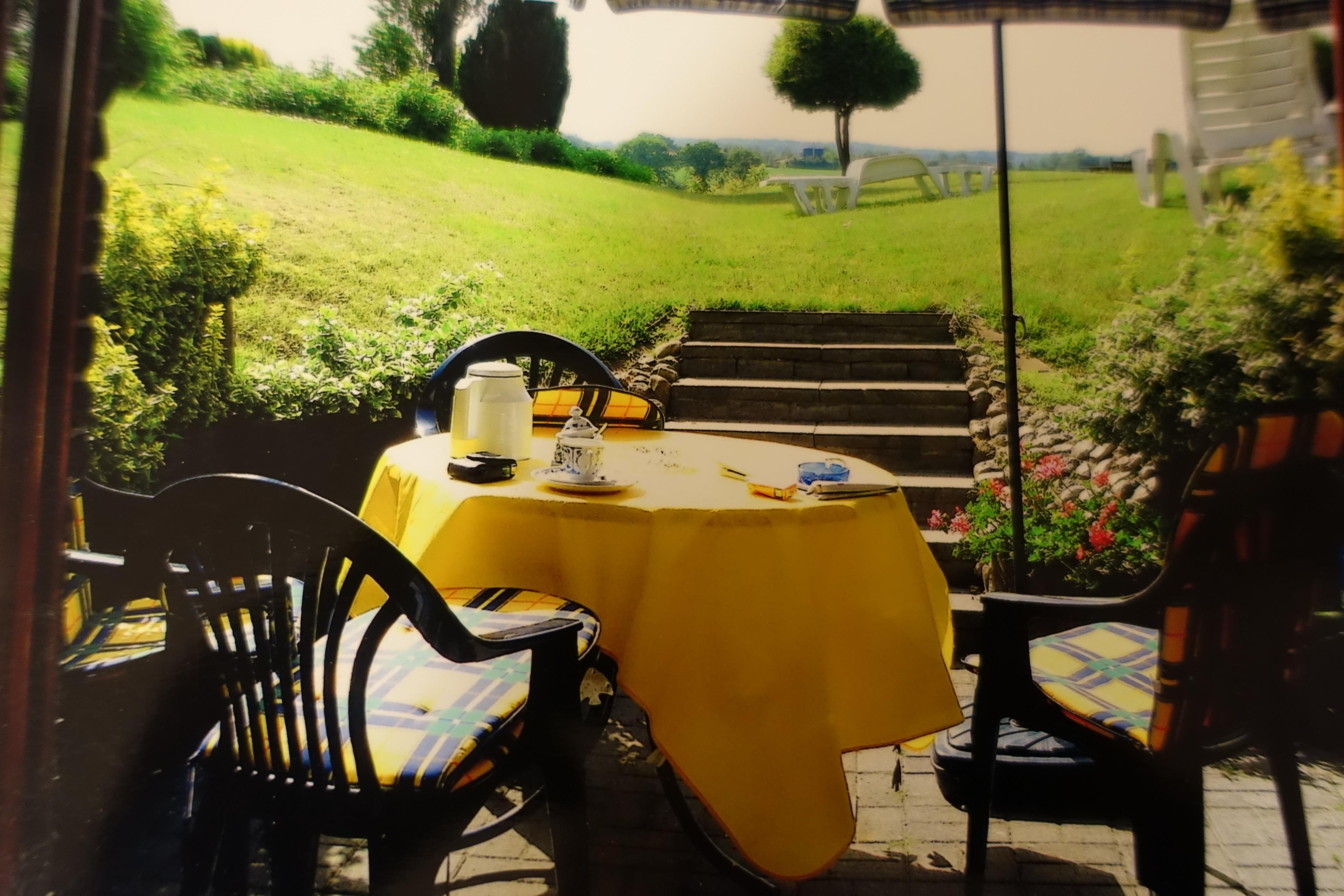 Die helle Ferienwohnung "Goldbutt" befindet sich im Souterrain des Hauses und ist 81 qm groß. Aus dem Wohnzimmer und der Küche haben Sie einen freien Blick in den großzügigen Garten. Das Wohnzimmer mit Radio und Sat-TV (Flachbild) ist mit einer neuen Sitzgarnitur eingerichtet; darüber hinaus stehen Ihnen ein Esstisch sowie ein Doppelschrankbett mit Kaltschaummatratzen zur Verfügung. Dem Wohnzimmer schließt sich eine eigene Terrasse mit Möbeln auf dem Schleigrundstück an. Das Schlafzimmer ist mit einem Doppelbett (180X200) sowie einem dritten Bett eingerichtet und wurde neu renoviert. Die separate Küche ist mit Herd, Backofen, Mikrowelle, großem Kühlschrank sowie separatem Gefrierschrank ausgestattet und wurde ebenfalls komplett neu renoviert. Zur Wohnung "Goldbutt" gehören noch eine Diele und ein Abstellraum. Das große, komplett renovierte Bad ist mit Dusche, Badewanne und einem Föhn ausgestattet.