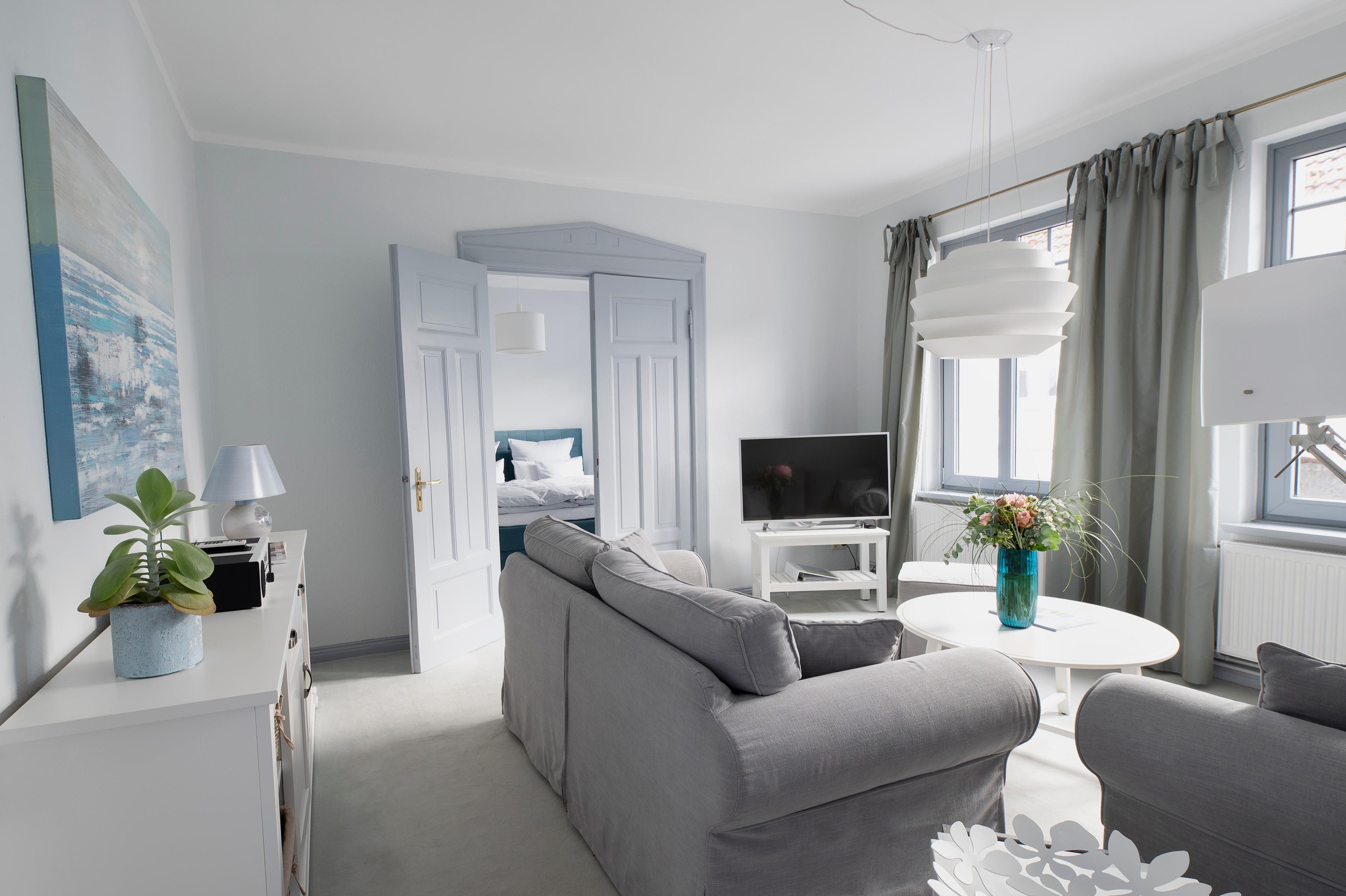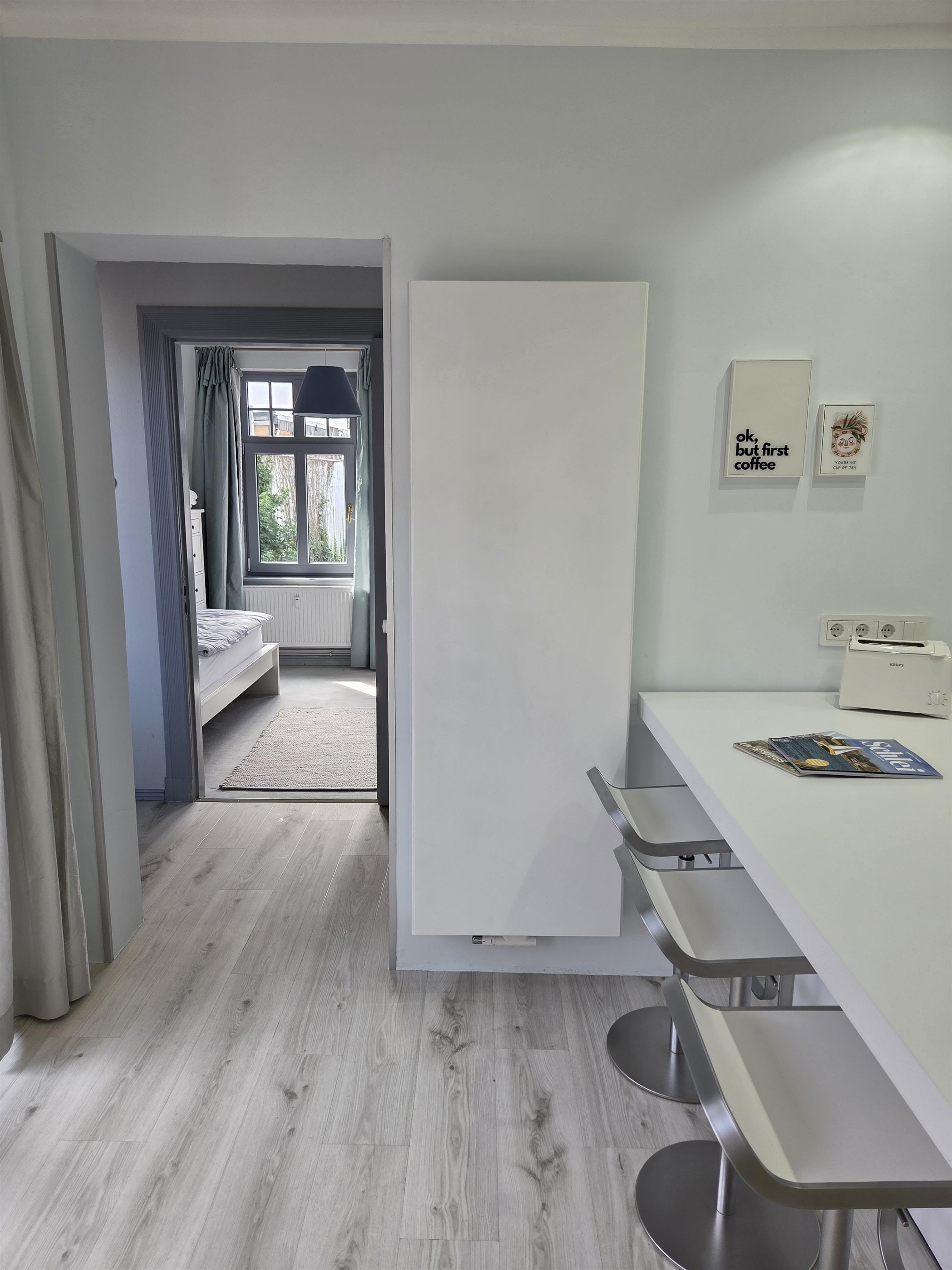 Helle, charmante, neu und sehr niveauvoll renovierte ca. 80 m2 große Wohnung mit Wohnzimmer, 2 Schlafzimmern, Küche inkl. Essecke, Bad, Flur sowie Treppenaufgang mit Zugang zum Innenhof. Ausgestattet mit Digital TV, WLAN, großzügiger Sitzgruppe, Sideboard im Wohnzimmer, Küche mit Herd/ Backofen/ Mikrowelle/ Geschirrspülmaschine/ Kaffeevollautomat; Bad besteht neben WC und Waschbecken aus großzügiger überlanger Dusche mit Fenster zum Innenhof; Schlafzimmer haben Kommode, Schrank, Frisiertisch sowie Betten von je 90 x 200 cm. Ein abschließbarer Fahrradstellplatz ist vorhanden.