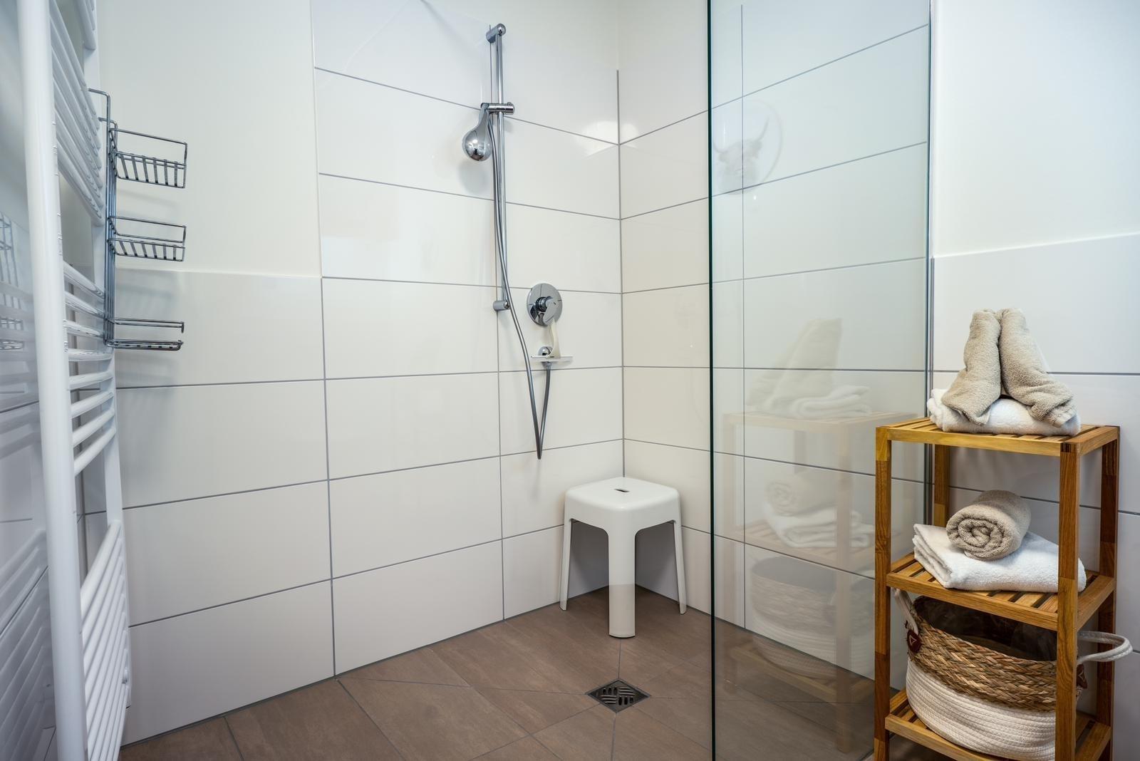 Sie parken direkt kostenlos vor der Wohnung auf Parkplatz Nr. 1 an der Appartementanlage Nr. 3. Von dort können Sie direkt über die kleine Treppe auf die Terrasse der FEWO gelangen oder Sie nutzen den Haupteingang des Hauses (Fahrstuhl vorhanden). Die Wohnung ist barrierearm, das Tür- Innenmaß beträgt 80cm, eine ebenerdige Dusche ist vorhanden.