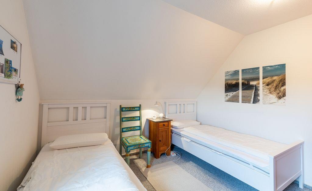Dort befinden sich in ein Schlafzimmer ein Doppelbett (2x 90x200 cm) und ein weiterer Schlafraum mit zwei Einzelbetten (je 90x200 cm), sowie das zweite Badezimmer.