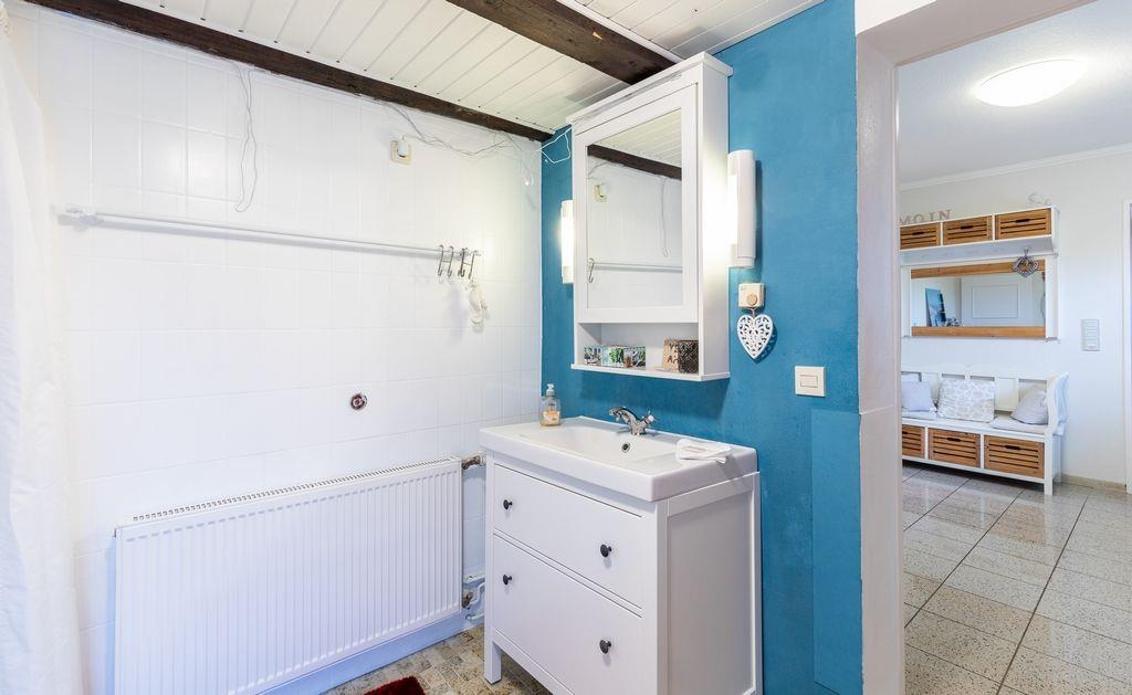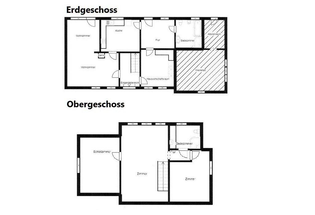Im Erdgeschoss des Hauses liegt der Wohn- und Essbereich, ein Badezimmer mit Badewanne und Dusche, ein Hauswirtschaftsraum, sowie die Küche.