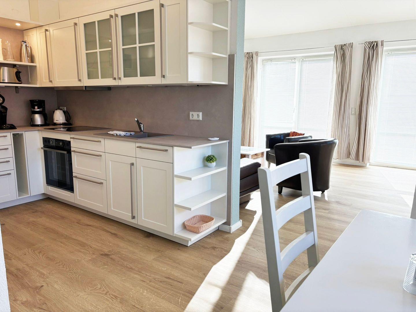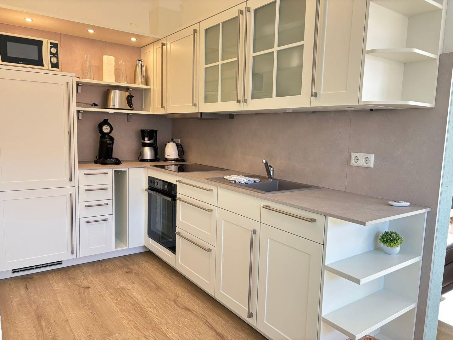 Für 2 Personen ist die Ferienwohnung eingerichtet und verfügt über ein Wohnzimmer mit einer Schlafcouch und offener Küchenzeile, ein Schlafzimmer mit einem Doppelbett und ein Badezimmer mit einer Dusche. Die Küchenzeile ist gut eingerichtet und lädt Sie zum Kochen ein.
