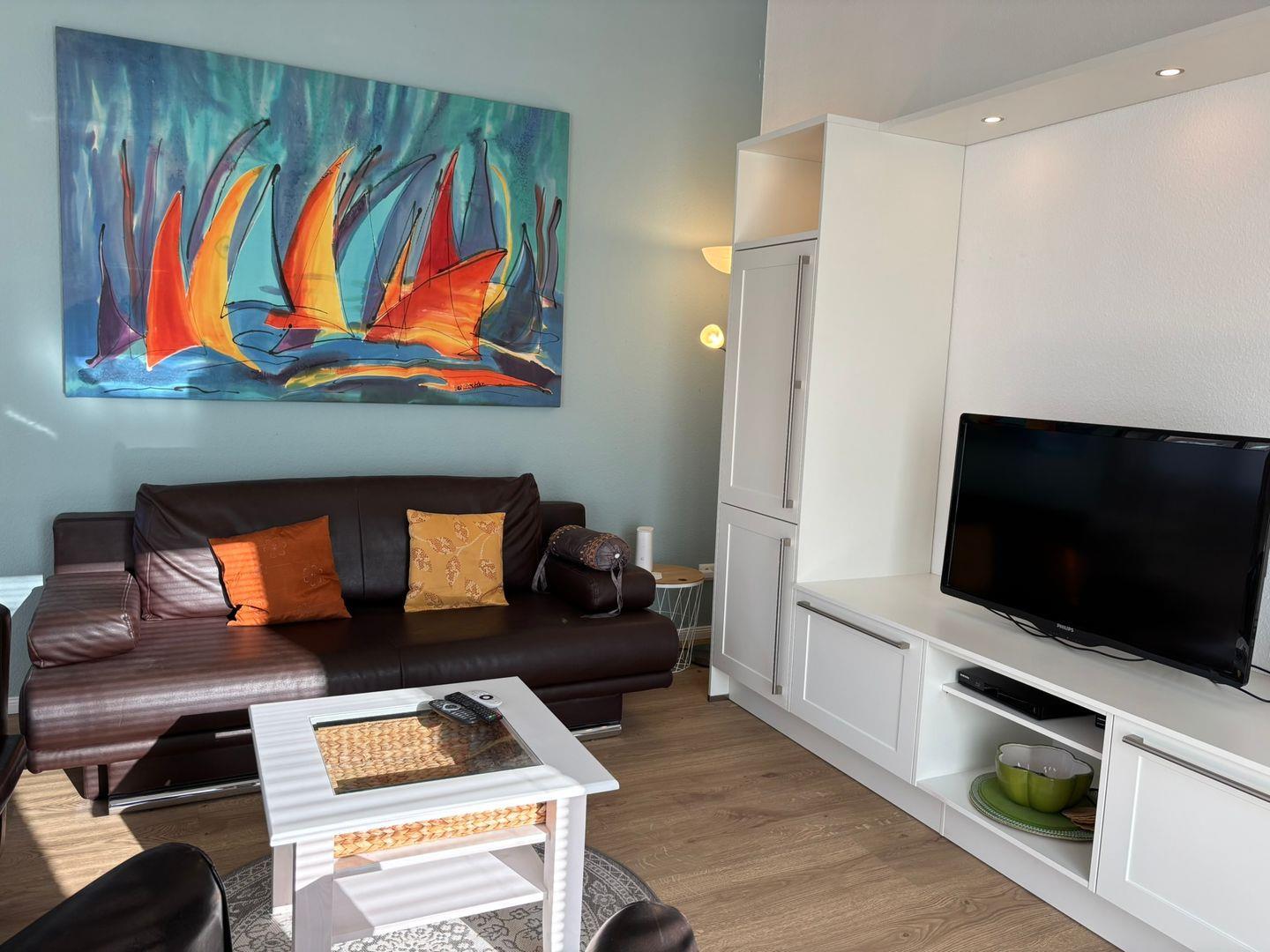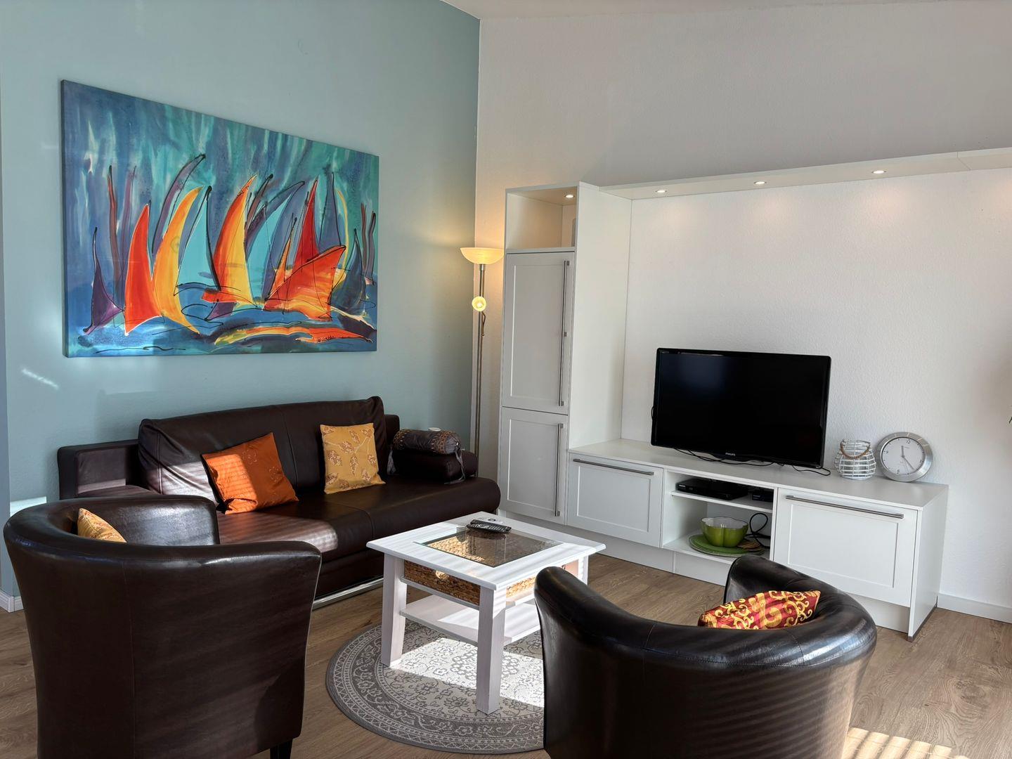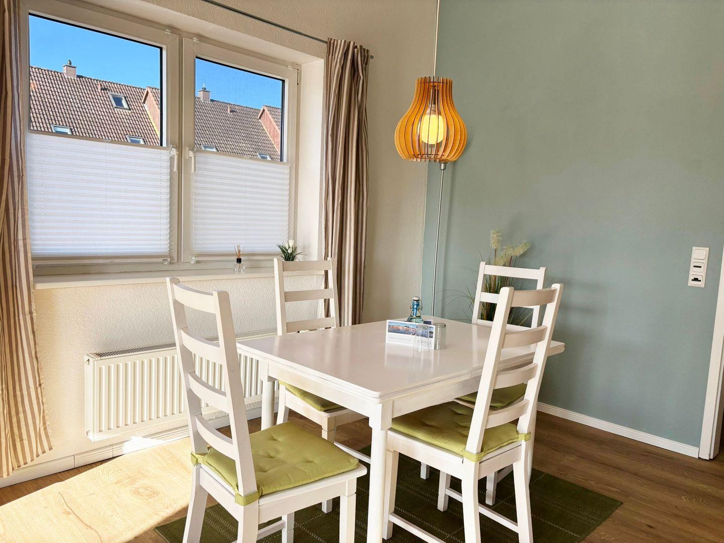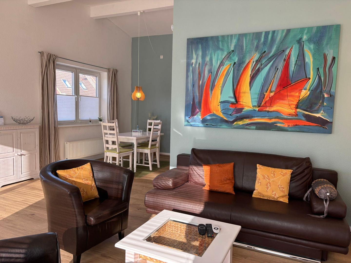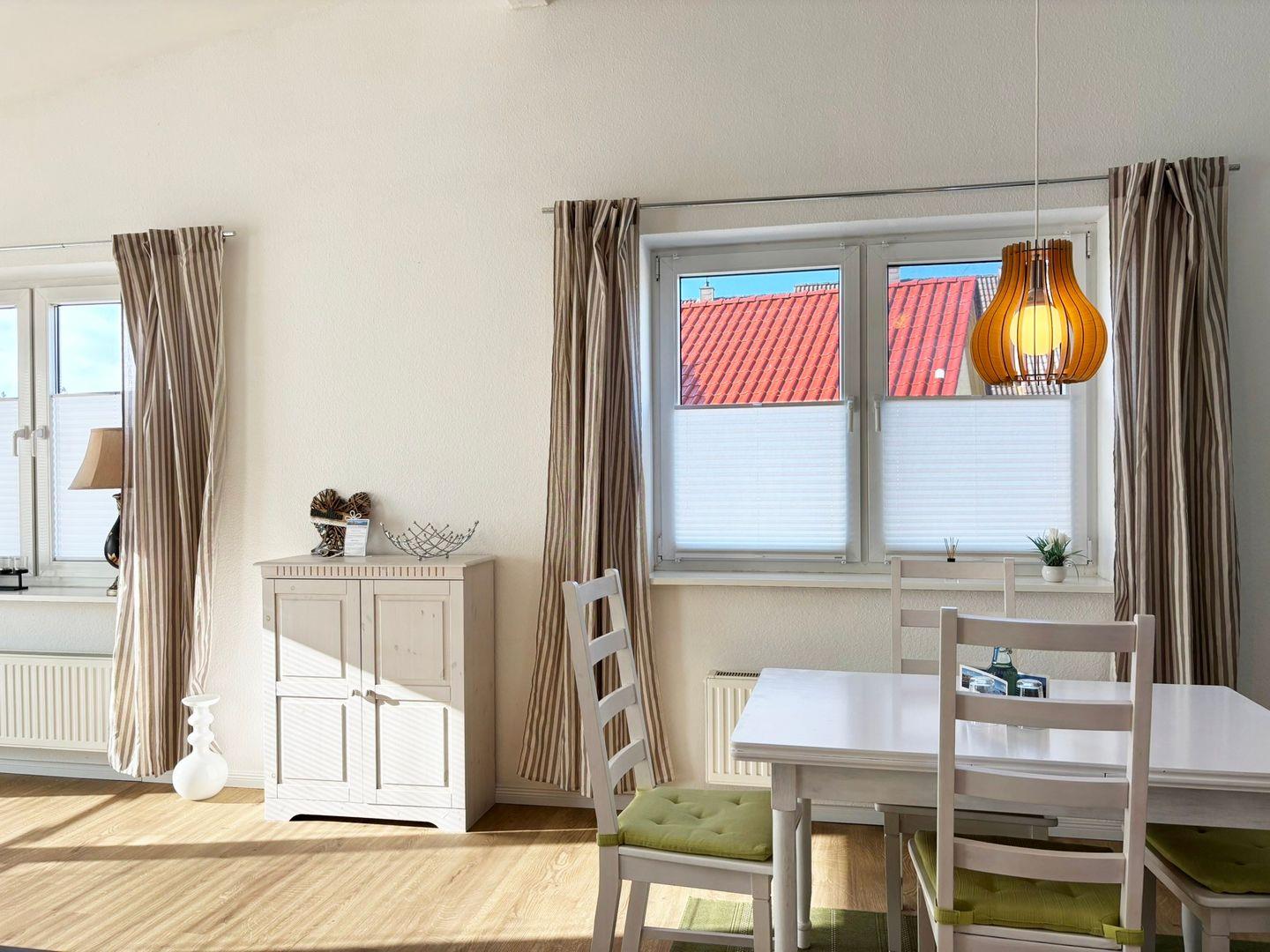 Modern und gemütlich ist die Ferienwohnung eingerichtet. Sie befindet sich im 1 Obergeschoss- Dachgeschoss ohne Dachschrägen.