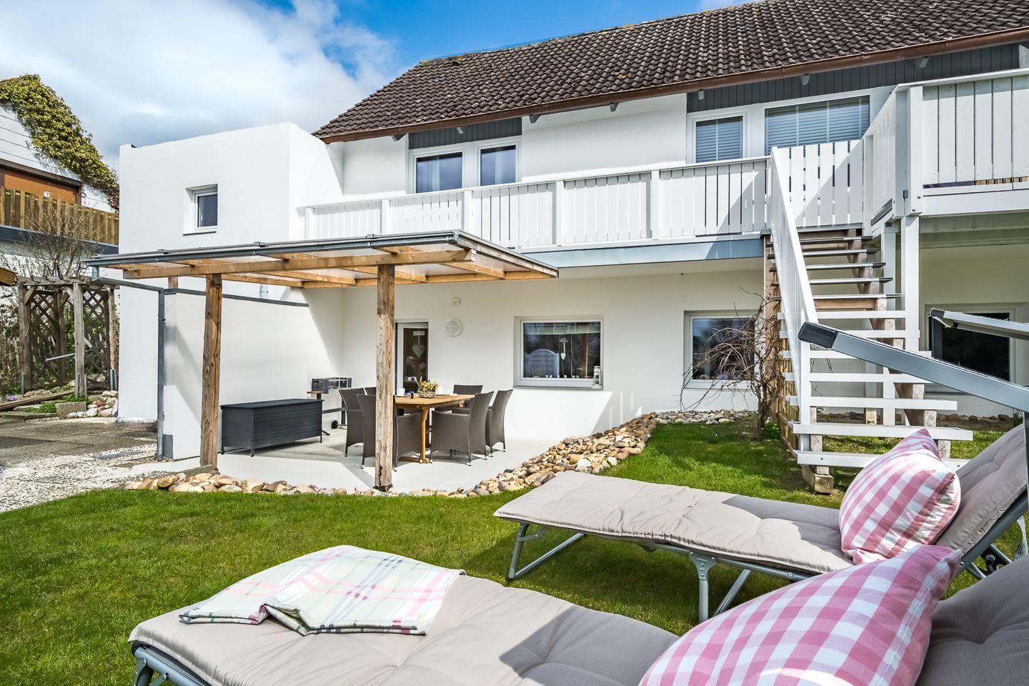 Moderne und gemütliche Souterrain-Ferienwohnung mit Terrasse und einem großen Garten, der zum Spielen und Entspannen einlädt - nur 900 Meter vom Schleiufer entfernt.