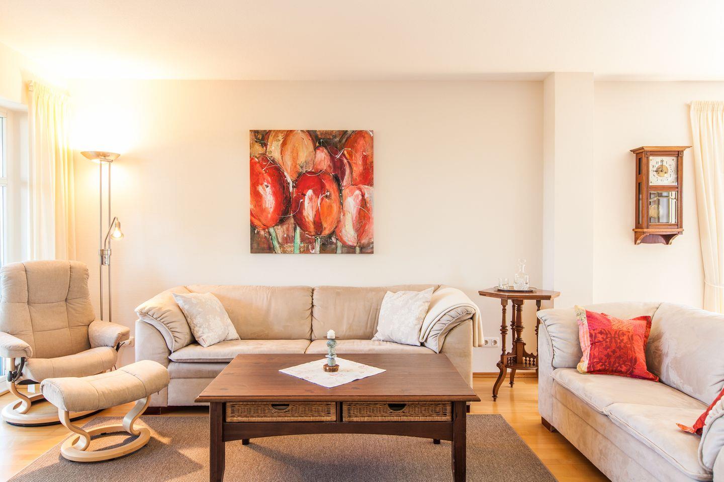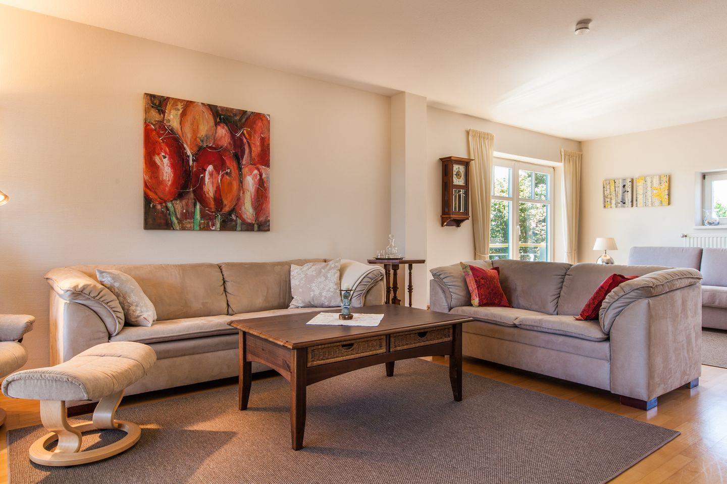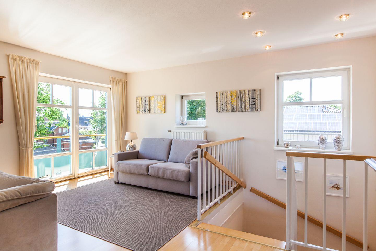 Im Dachgeschoss befindet sich ein großes Wohnzimmer mit Schlafcouch (150x200 cm).