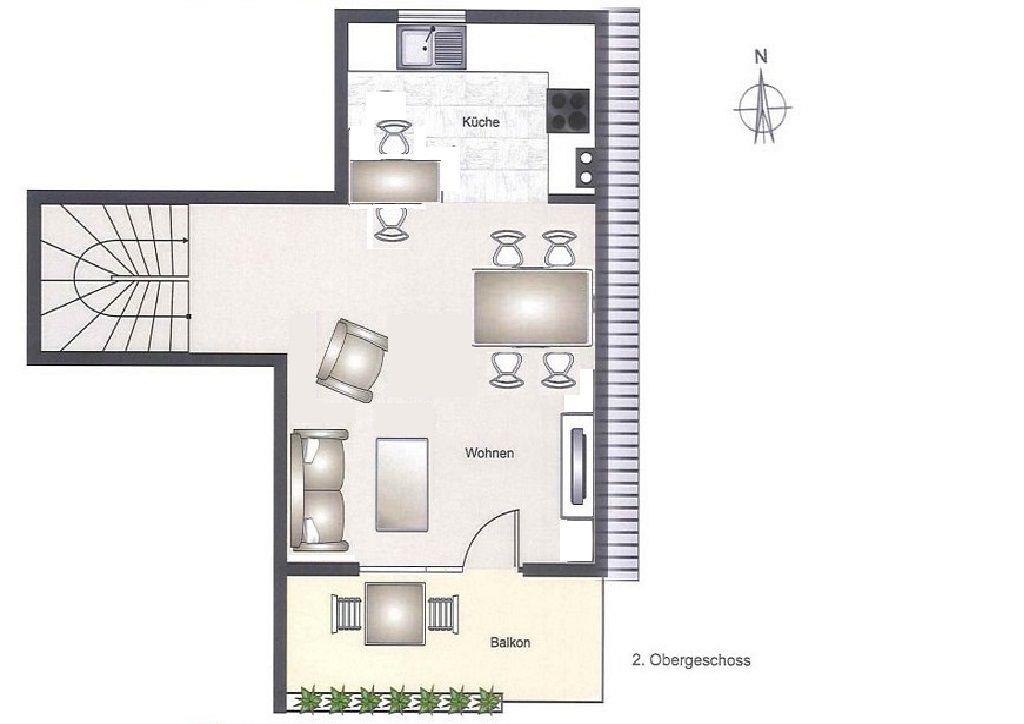 Dieses Geschoss verfügt über die Küche und den Wohn- und Essbereich.