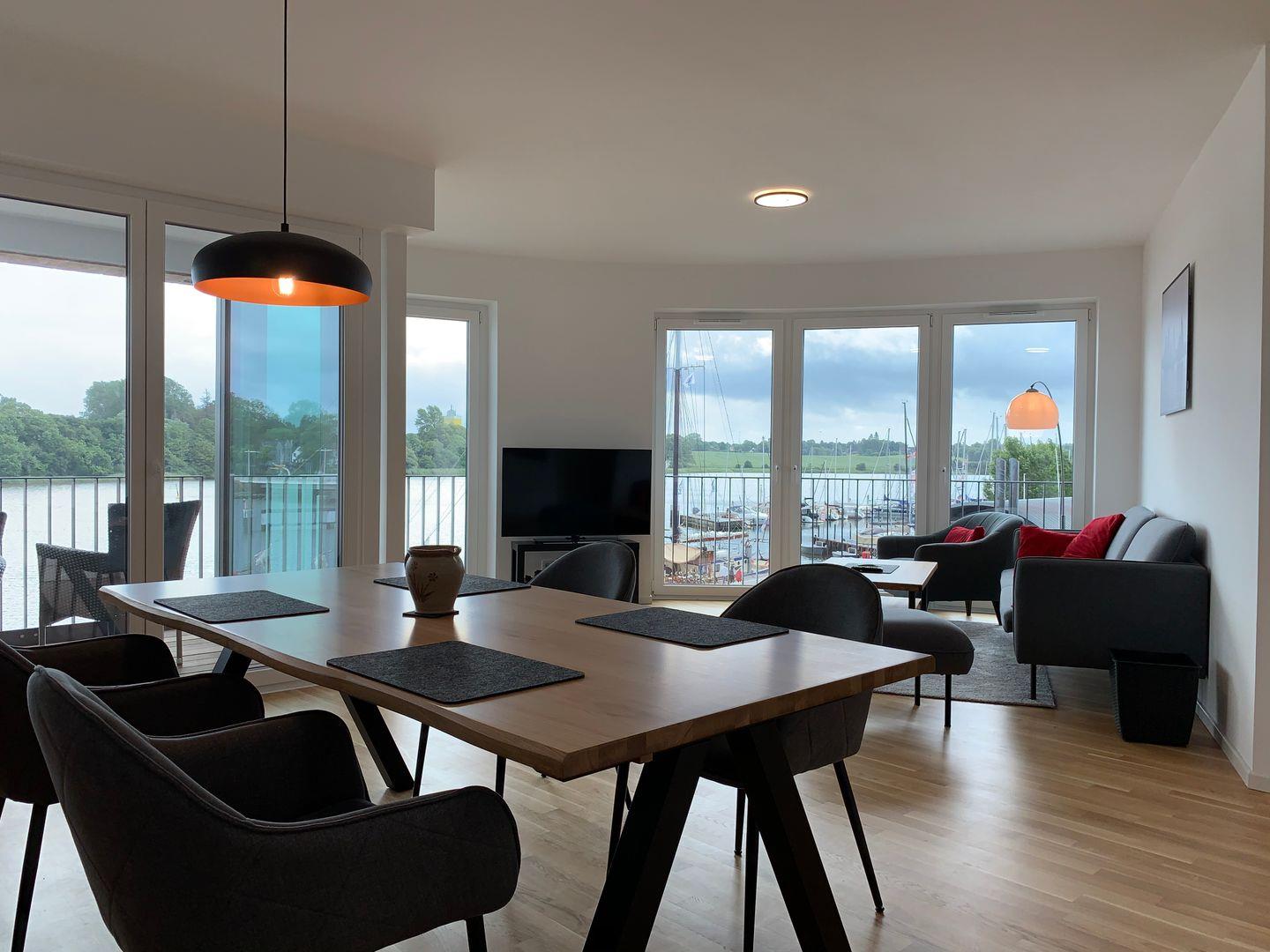 Zudem befindet sich hier der Zugang zum Balkon, welcher einen uneingeschränkten Blick auf die schöne Schlei ermöglicht.