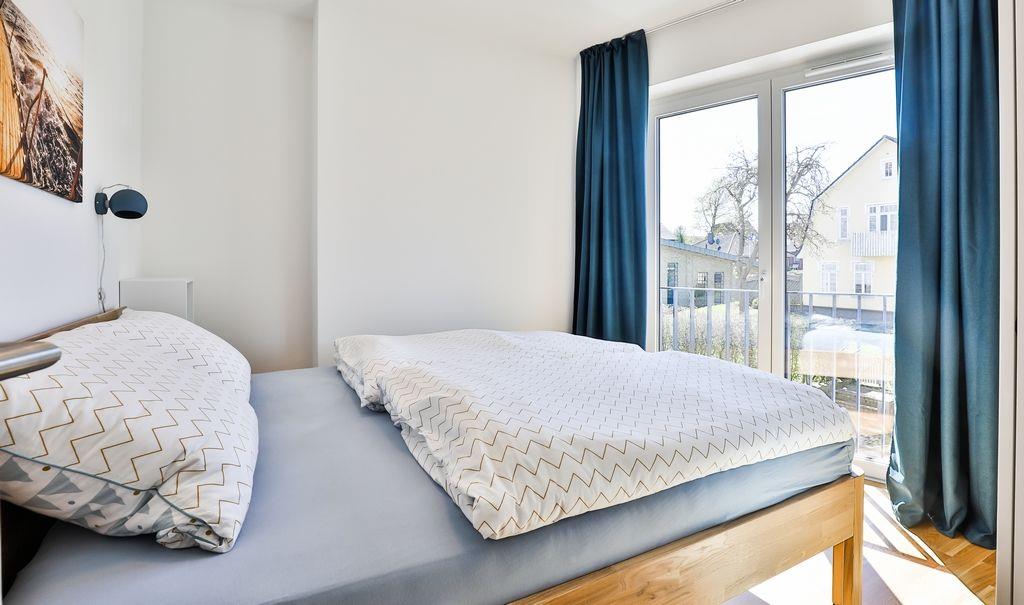 Die 79 qm-Wohnung liegt im 1. Obergeschoss des Hauses und verfügt über drei hochwertig eingerichtete Zimmer für einen entspannten Aufenthalt. Neben der modernen skandinavischen Einrichtung überzeugt die Ferienwohnung durch den tollen Ausblick auf den Ostseefjord Schlei.