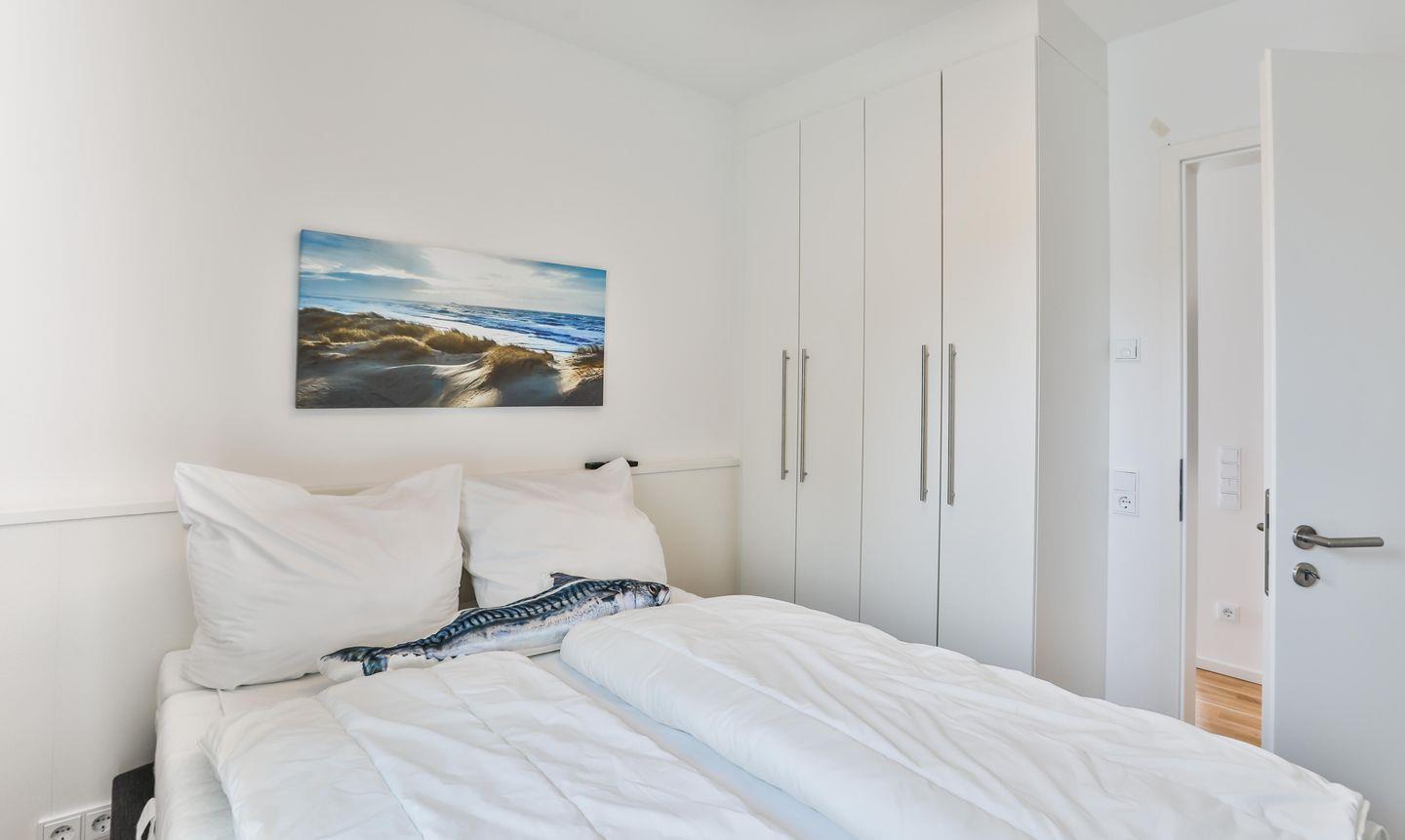 Des Weiteren bietet die Wohnung zwei Schlafzimmer. Schlafzimmer 1 verfügt über ein Doppelbett der Größe 180x200cm, einen Kleiderschrank und ein Fernsehgerät. Schlafzimmer 2 verfügt über ein Doppelbett der Größe 140x200cm und ebenfalls über einen Kleiderschrank und ein Fernsehgerät.