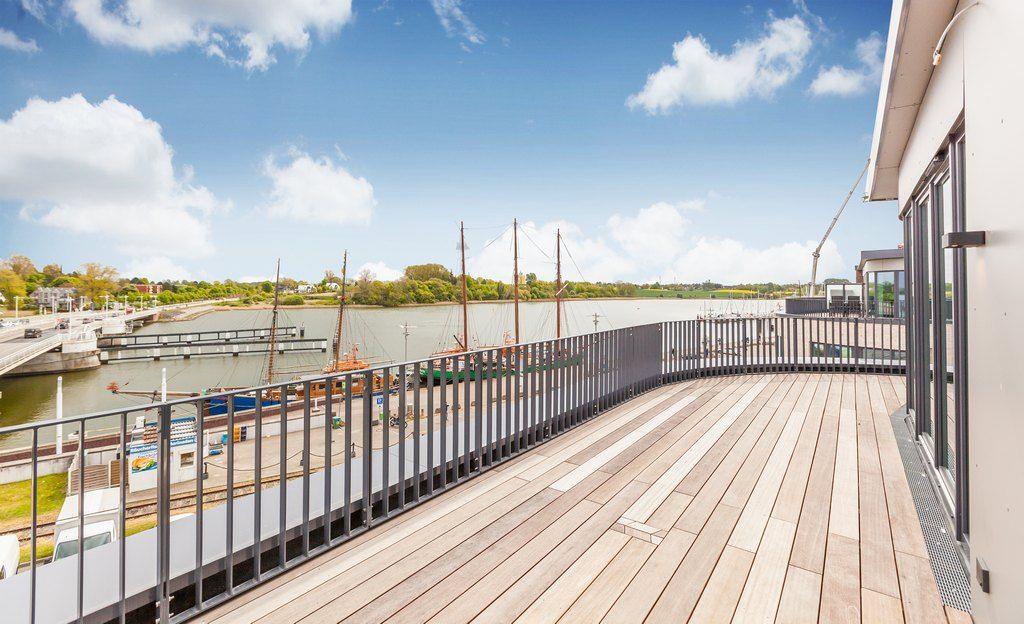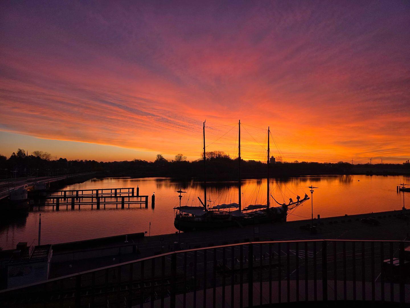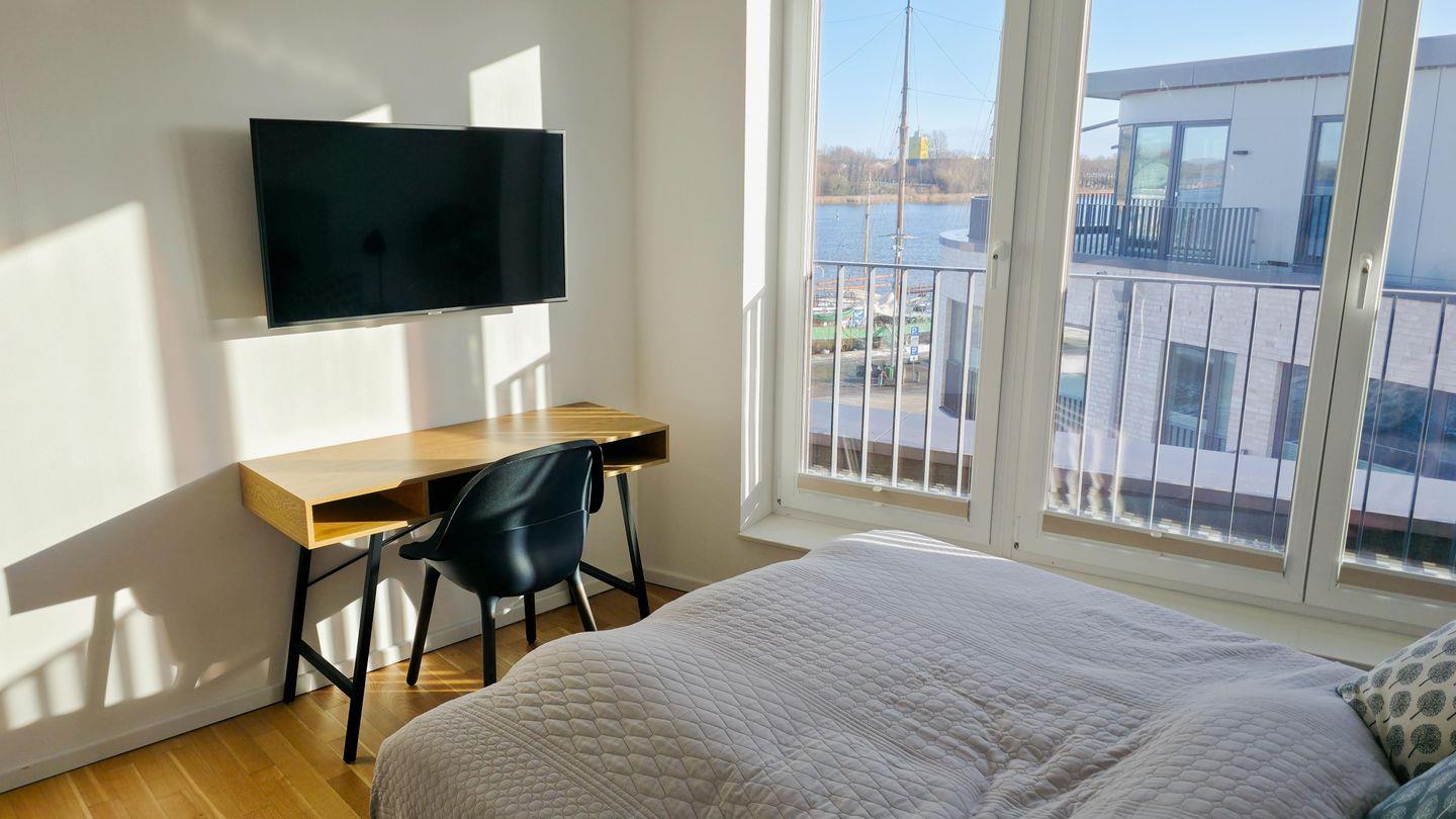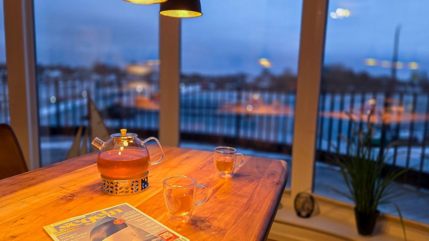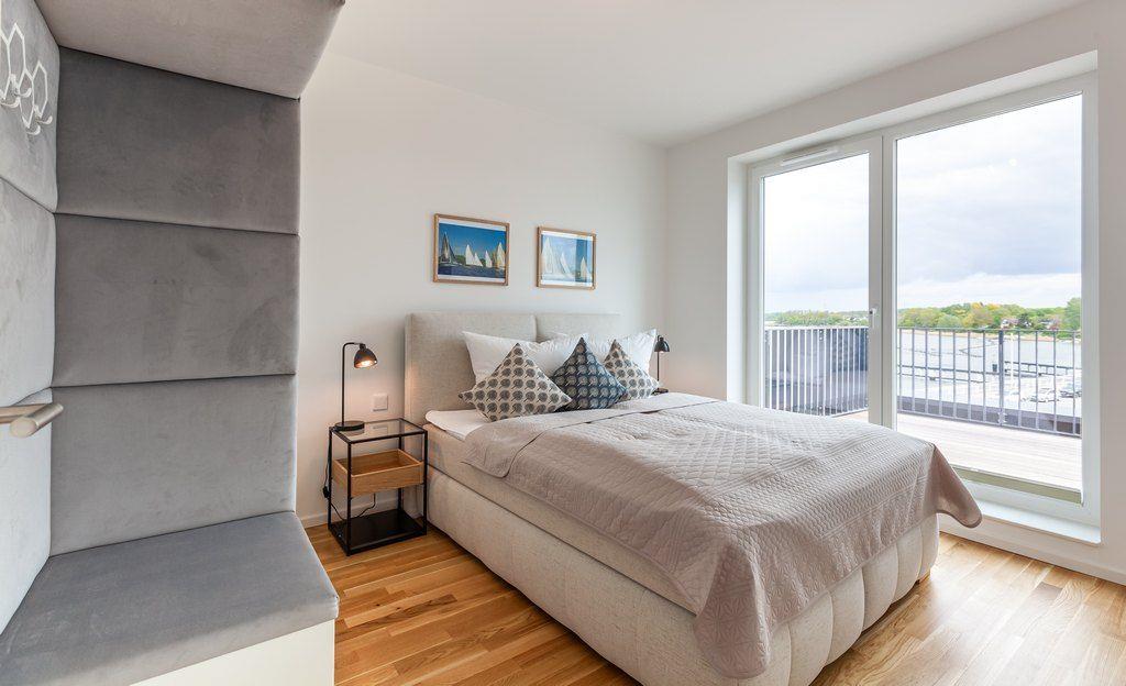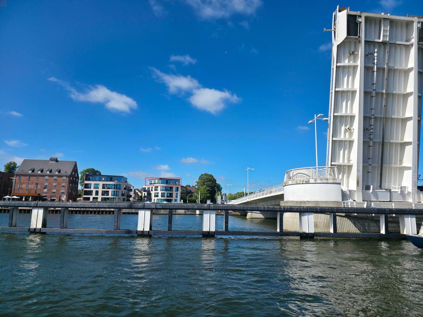 Das Penthouse „Horizont“ besticht durch seine unmittelbare Nähe zum Kappelner Hafen und den uneingeschränkten Blick auf die Hebebrücke und den Museumshafen.