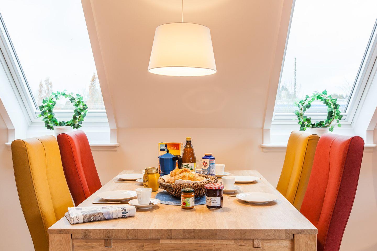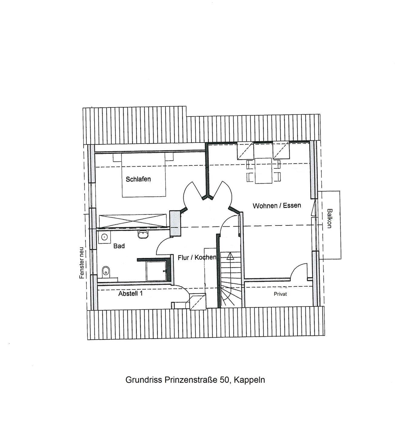 Diese Ferienwohnung befindet sich im Dachgeschoss eines Zweifamilienhauses.