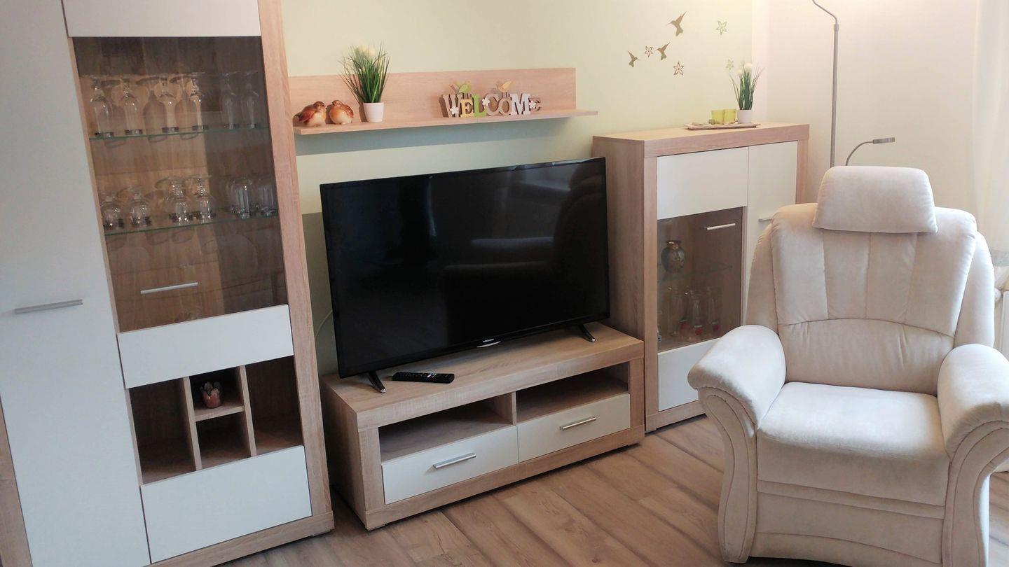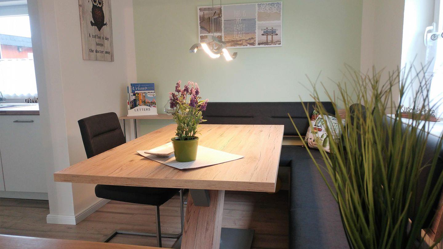 Auf ca. 70m² bietet die behagliche Wohnung genug Platz für 4 Personen + Baby. Im Erdgeschoss der Doppelhaushälfte befindet sich eine kleine Stube mit Schlafsofa und angeschlossenem Esszimmer. Die, an das Esszimmer grenzende voll ausgestattete neue Küche hat einen Ausgang in den vollständig eingezäunten, wunderschönen Garten, der von unseren Gästen genutzt werden darf.