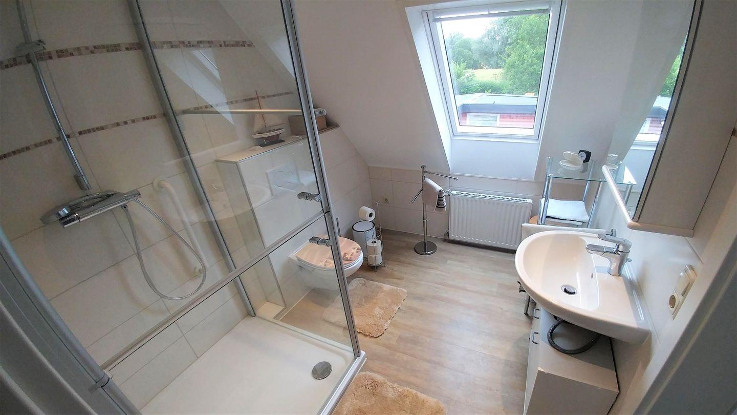 Im OG des Hauses befinden sich die beiden Schlafzimmer, eines mit Doppelbett, das zweite mit zwei Einzelbetten. Ein modernes Duschbad und die kleine Gästetoilette sorgen dafür, dass niemand lange warten muss ;-)