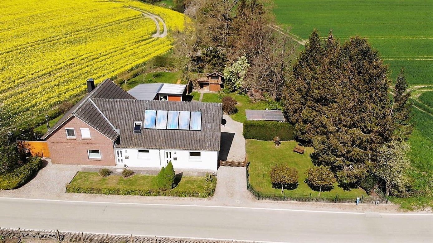 Die Doppelhaushälfte mit eingezäunten Garten liegt, eingebettet zwischen Feldern, nur 3 km von der Schleistadt Kappeln entfernt.