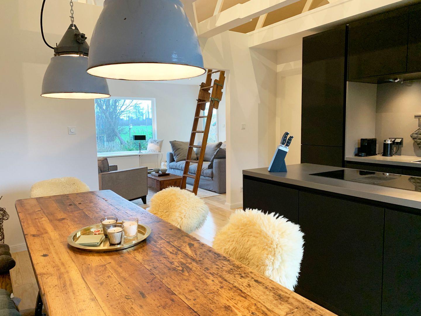 Übrigens, der Ausblick aus dem Wohnbereich gab dem Ferienhaus auch seinen Namen: Wenn Sie den Blick über den Garten schweifen lassen, können Sie die Masten der Segelboote des Kappelner Hafens erkennen. Direkt angrenzend bietet die topmoderne Küche mit Kochinsel eine umfangreiche Ausstattung und lässt Hobbyköchen keine Wünsche offen. Bereiten Sie Ihren Lieben hier leckere Mahlzeiten zu, die sich im anschließenden Essbereich mit rustikalem Esstisch wunderbar gemeinsam verspeisen lassen.