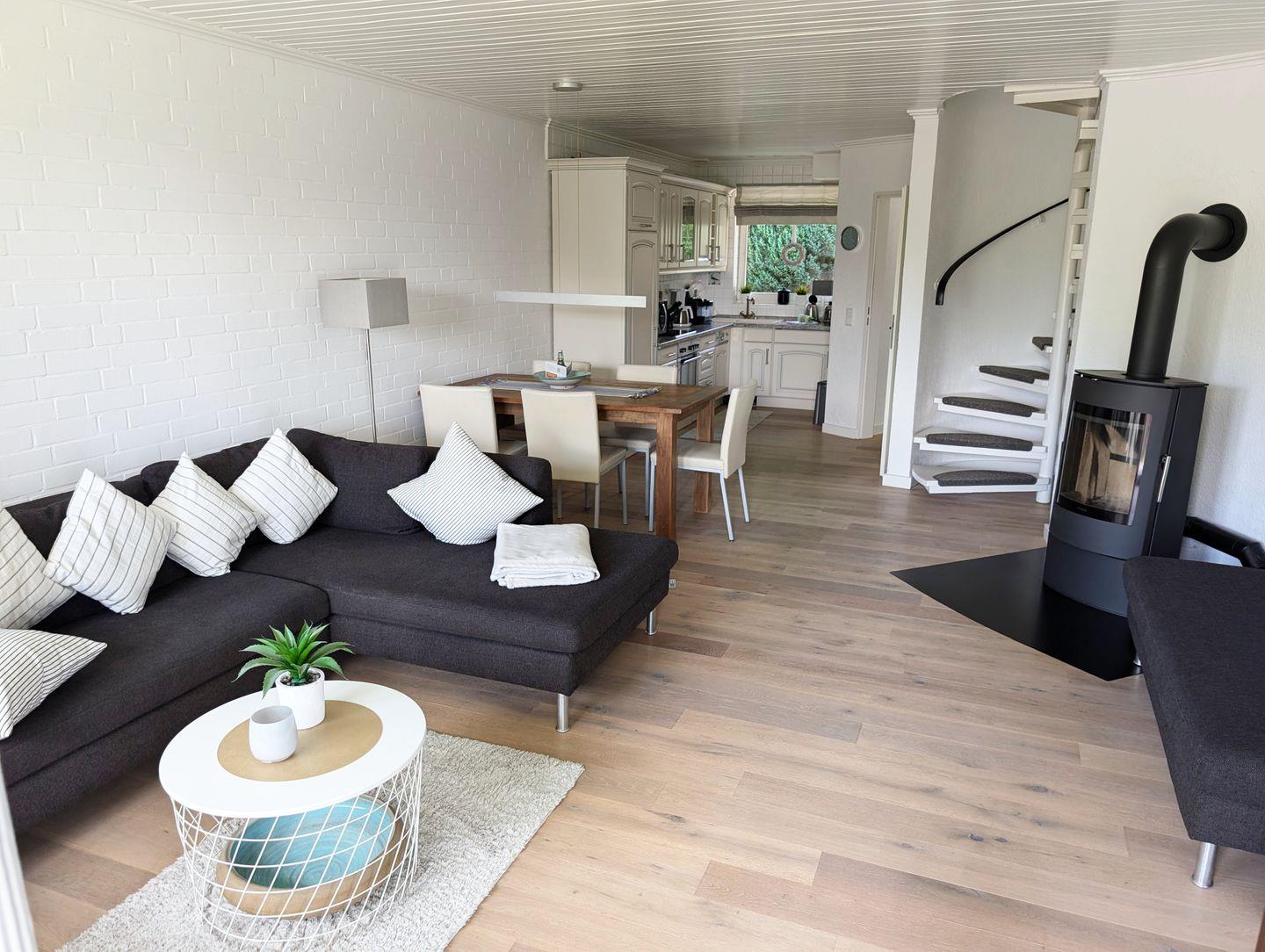 Ankommen und entspannen! Genießen Sie Ihre Freizeit in dem gemütlichen Reihenmittelhaus - bei einem Glas Wein auf dem Balkon oder auf dem Sofa vor dem Kaminofen. Die offene Küche und ein großzügiger Essplatz laden zum Kochen ein. Restaurant-Liebhaber finden eine große Auswahl ausgezeichneter Lokale und uriger Kneipen an der nahegelegenen Schleipromenade von Kappeln, nur 10 Gehminuten entfernt.