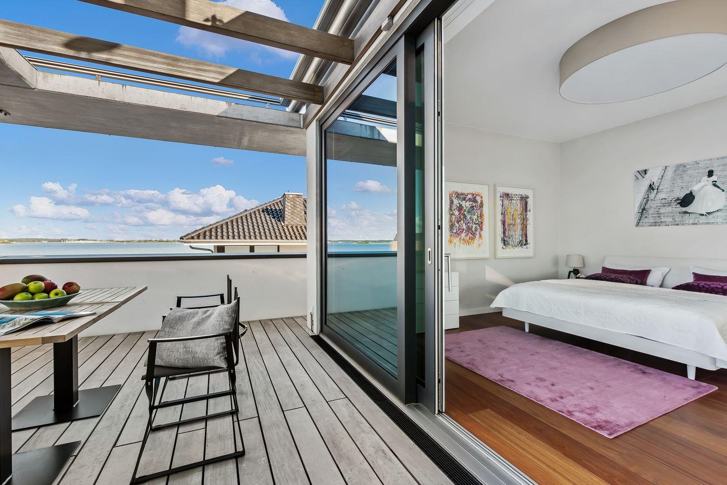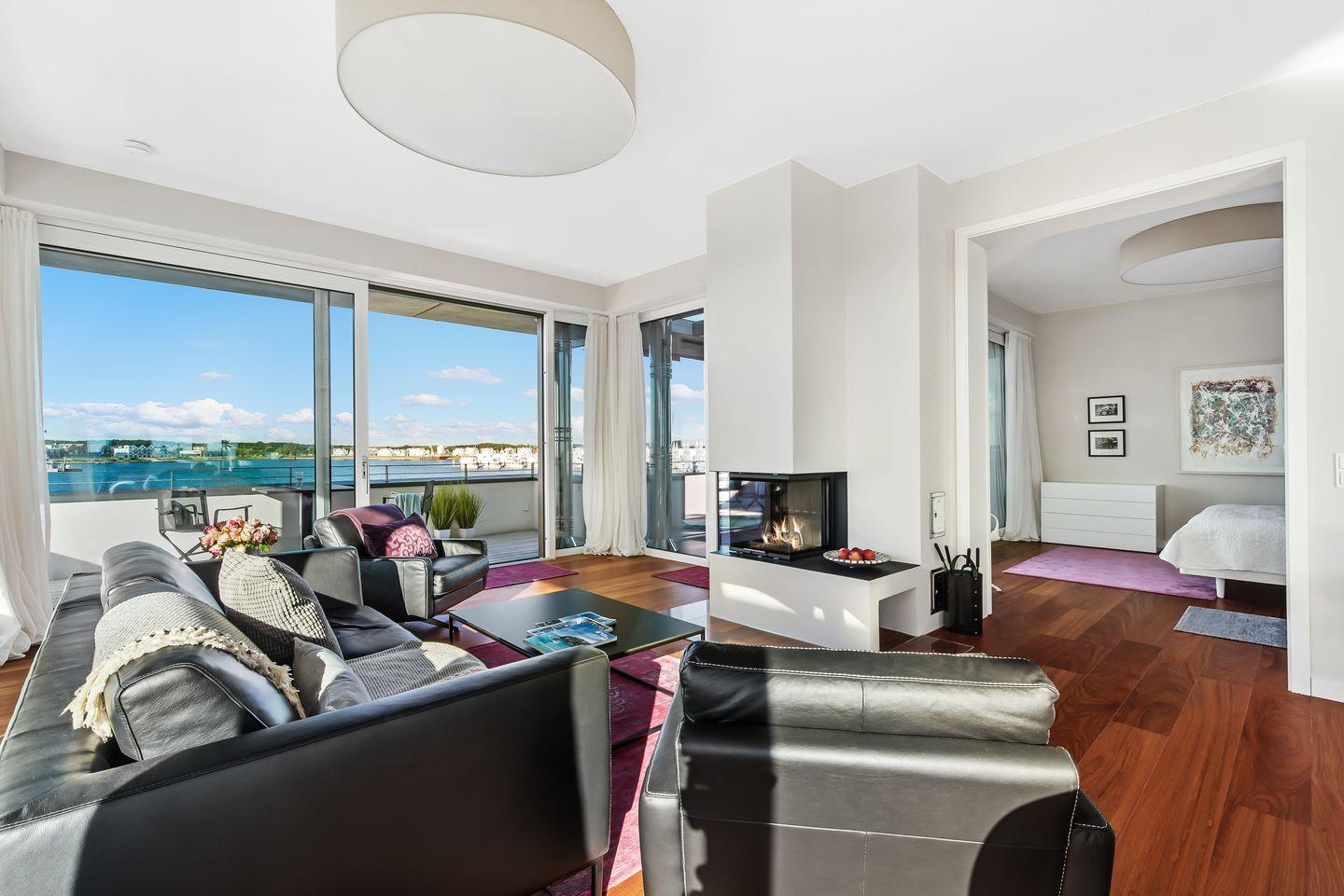 Luxuspenthouse mit Panoramameerblick, Dachterrasse und Kamin direkt an der Ostsee