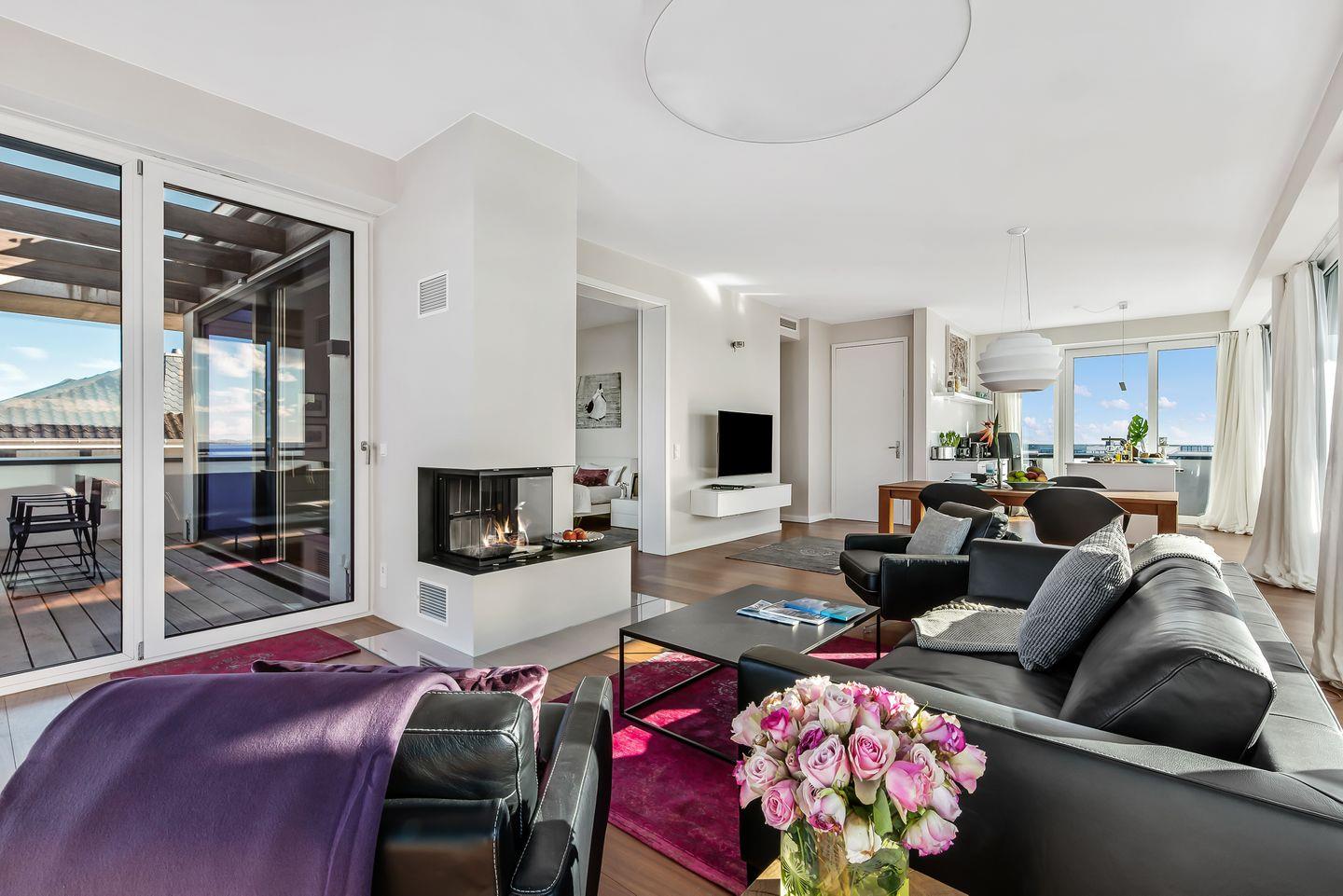 Das luxuriöse Penthouse "Sky Lodge" liegt nur wenige Meter vom fein abfallende Sandstrand im Ostseeresort Olpenitz entfernt und bietet mit seiner großen Dachterrasse, der luxuriösen Ausstattung und dem Kaminofen einen wunderbaren Rückzugsort um dem Alltag zu entfliehen.