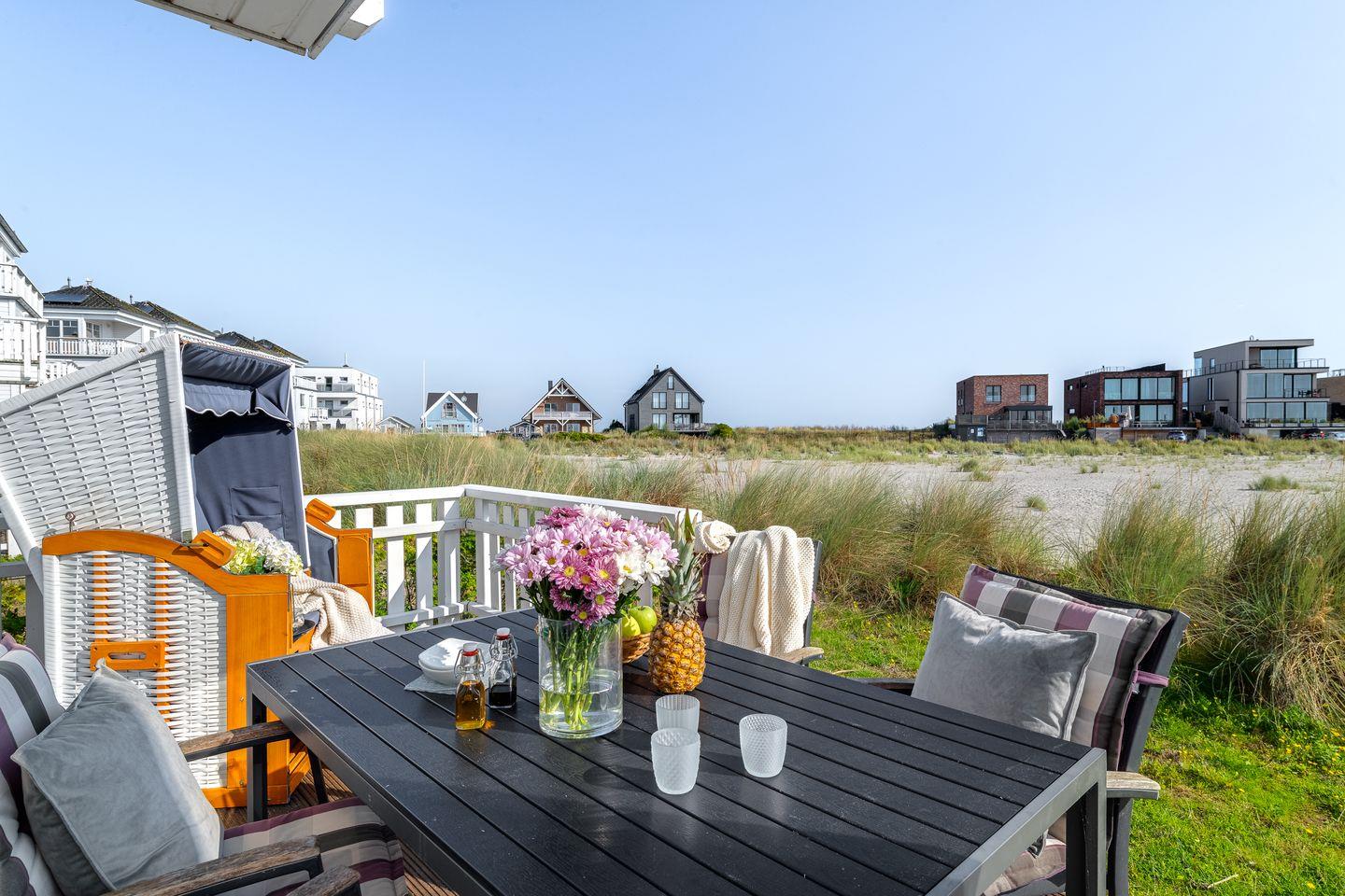 Die Dachterrasse ist perfekt zum Entspannen nach der Sauna, für Sonnenbäder und um romantische Sonnenuntergänge zu genießen. Der direkte Strandzugang und ein privater PKW-Stellplatz vor der Tür runden das Angebot ab.