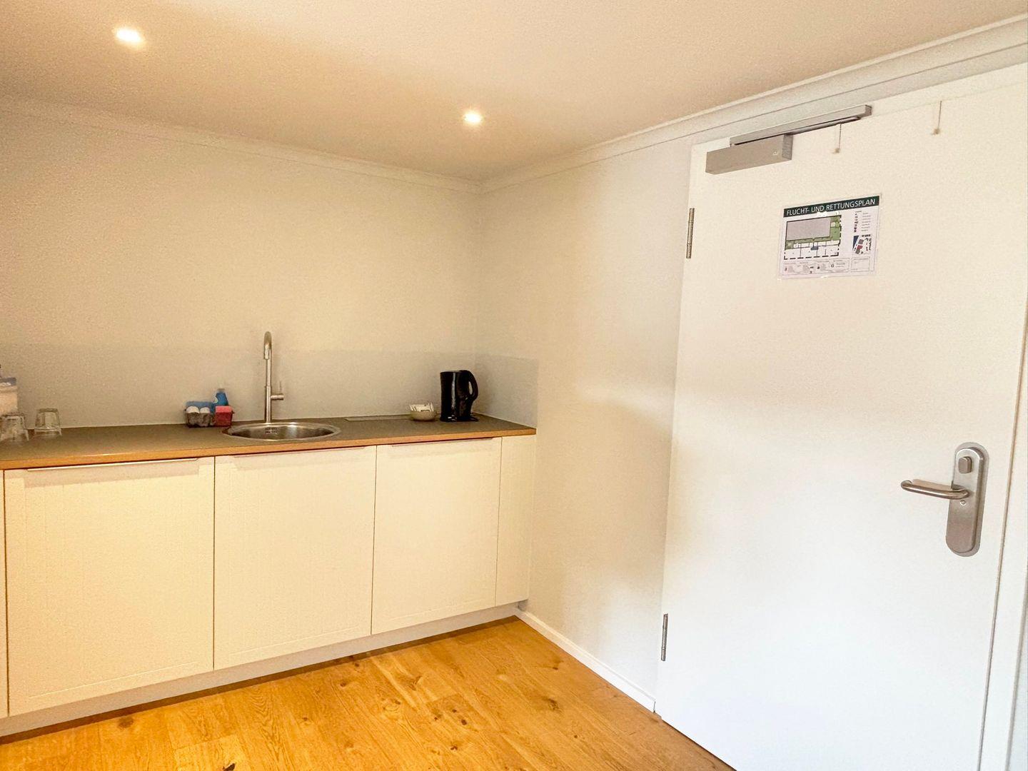 Das Appartement liegt in der sechsten Etage des Pierspeichers und ist bequem über einen Aufzug oder das Treppenhaus erreichbar. Der offene Wohnbereich ist mit einem kleinen Esstisch, einem Schreibtisch, einem Sessel sowie einem Sofa und einer Kommode ausgestattet. Der Schlafbereich verfügt über ein komfortables Doppelbett (180x200 cm) mit getrennten Matratzen und offenem Fußende, ergänzt durch einen Kleiderschrank, Kofferablage und Verdunklungsmöglichkeiten für erholsame Nächte.