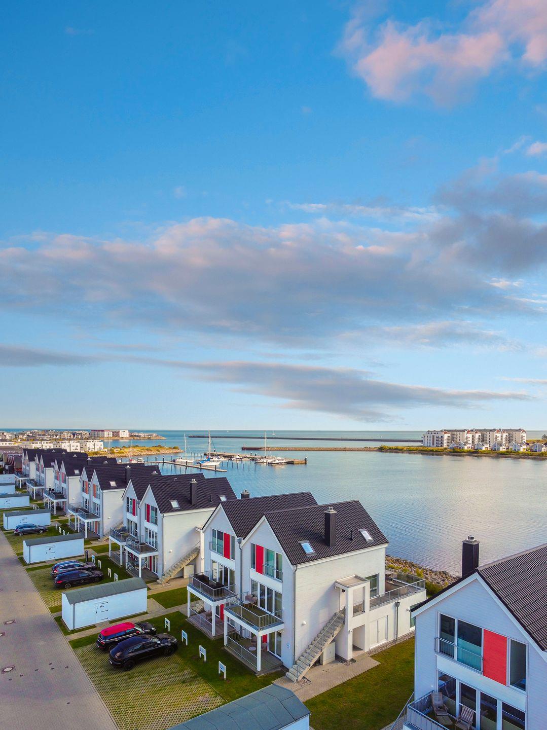 Die Ferienwohnung "Baltic Side" bietet auf 97 m² eine moderne Ausstattung mit zwei Schlafzimmern, Kaminofen, offenem Wohn- und Essbereich sowie einem Balkon mit Meerblick. Der Sandstrand ist in 350 m erreichbar.