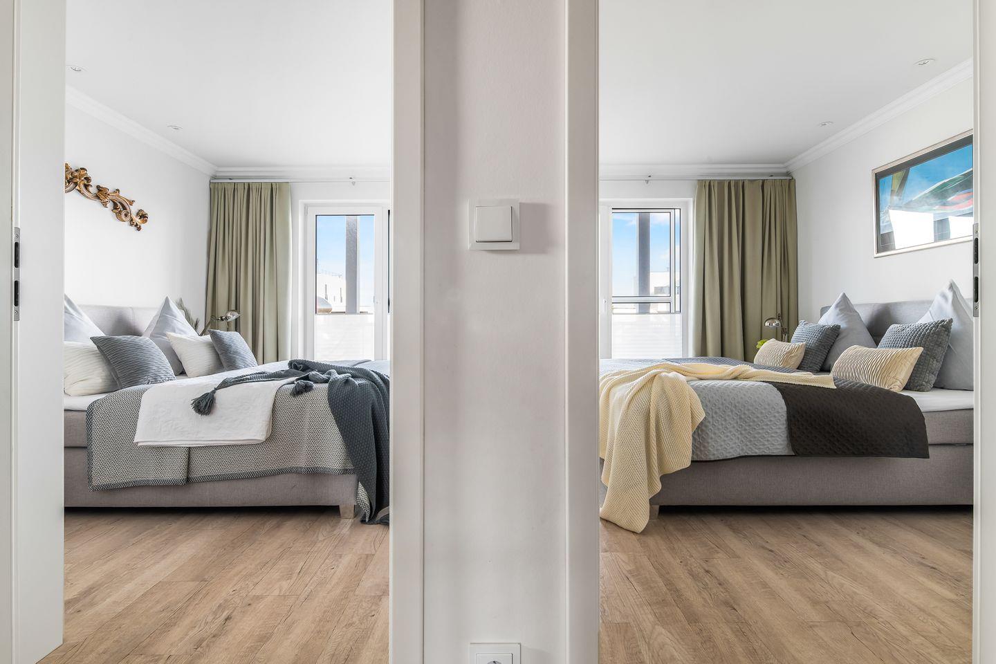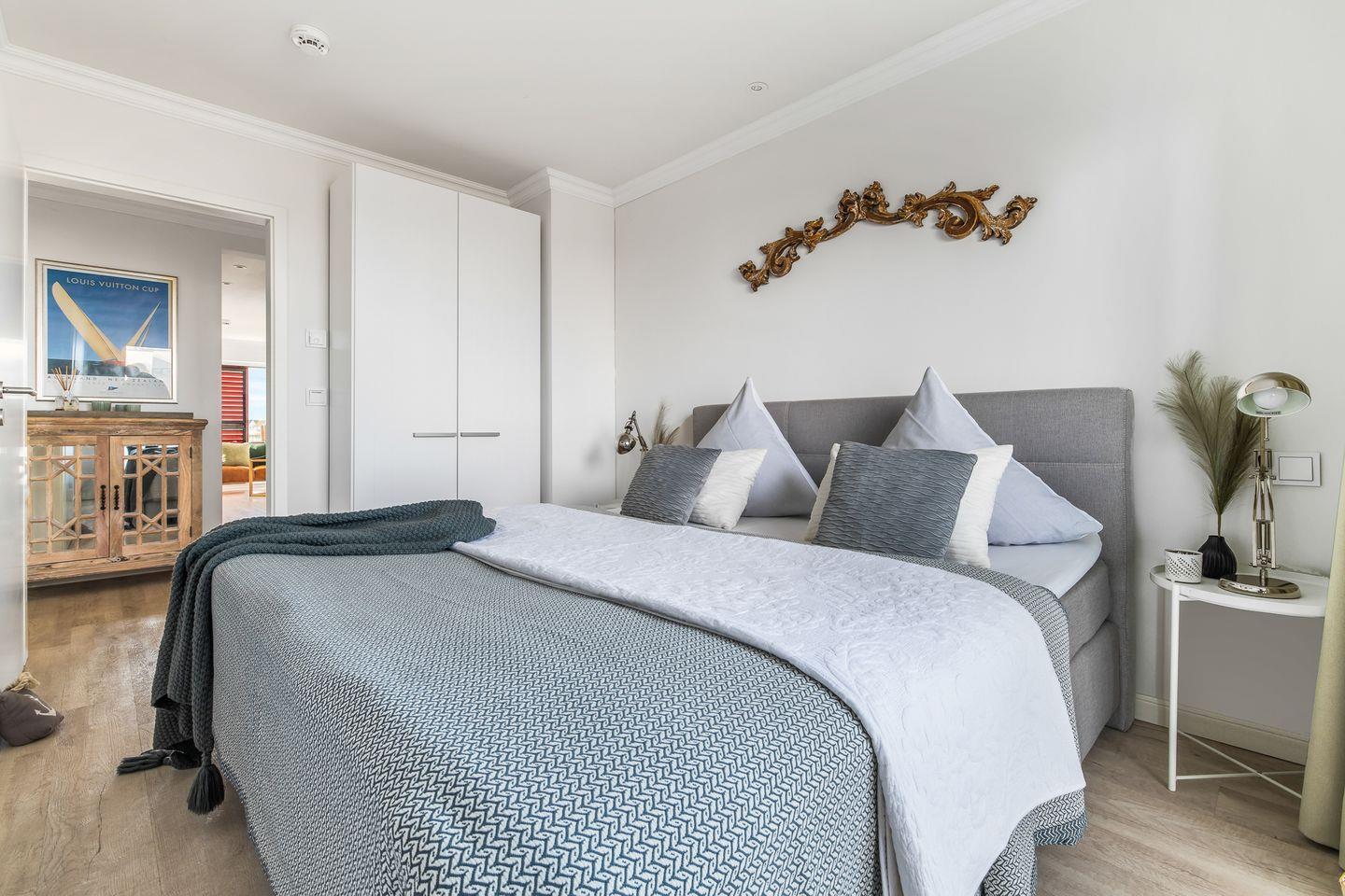 Die beiden Schlafzimmer sind jeweils mit komfortablen Boxspringbetten ausgestattet und bieten direkten Zugang zur zweiten Terrasse. Hier endet der Tag so friedlich, wie er begonnen hat: Mit dem sanften Rauschen des Hafens im Hintergrund.