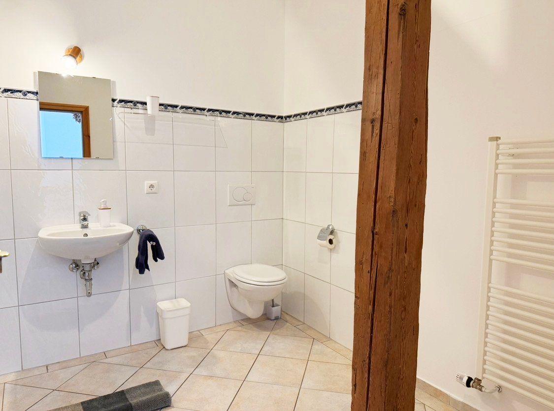 Die Ferienwohnung „Heuboden“ auf dem Nübbelhof bietet auf großzügigen 110 m² eine gelungene Kombination aus romantischem Landhausstil und komfortabler Ausstattung. Die über zwei Etagen angelegte Unterkunft ist ideal für bis zu vier Personen konzipiert und besticht durch ein gemütliches Ambiente, das durch eine Fußbodenheizung (Badezimmer und Küche) zu jeder Jahreszeit behaglich ist. Das Herzstück der Wohnung bildet das offene Wohnzimmer mit einladender Sofaecke, an das sich der Essbereich und die voll ausgestattete Küche direkt anschließen. Mit Ceranherd, Backofen, Spülmaschine und praktischen Küchenhelfern wie Mixer ist hier die Selbstversorgungsmöglichkeit garantiert. Die Schlafmöglichkeiten verteilen sich auf zwei separate Schlafzimmer, während ein Badezimmer mit Dusche sowie ein zusätzliches Gäste-WC für ausreichend Komfort sorgen. Ein Schlafzimmer verfügt über ein Doppelbett (180x200cm) mit getrennten Matratzen und das andere Schlafzimmer über zwei Einzelbetten.