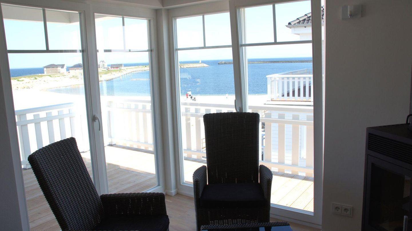 Eine Etage höher befindet sich das Studio mit weiteren Highlights: Großzügige Terrasse, Dusche, Sauna mit Meerblick, sowie einem gemütlichen Kamin im Wohnbereich und einem 2. Fernseher.