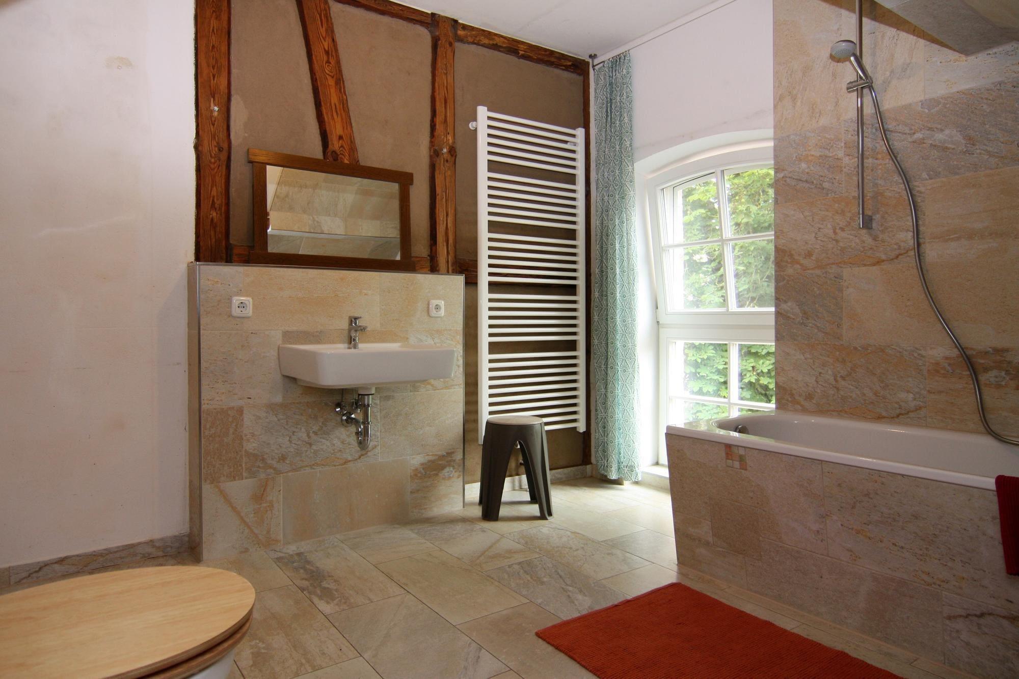 Idyllisk og i en rolig beliggenhed omgivet af grønne områder byder denne nænsomt renoverede og rummelige ferielejlighed med WiFi velkommen på øverste etage i et murstenshus i Karft kommune. Den store ejendom, som I deler med udlejer, ligger ugeneret og roligt i en blind vej. Et skønt udendørs opholdsområde med fortelt, grillfaciliteter og masser af skygge fra træer giver dig mulighed for at tage en skøn pause i naturen. Kommunen Karft ligger i Ludwigslust-Parchim-distriktet mellem Wittenburg og Zarrentin am Schalsee, omkring 35 kilometer fra Schwerin. Den gamle bydel i den lille by Wittenburg er omgivet af en velbevaret vold, hvis rester er blevet renoveret. Kirken og rådhuset i Wittenburg er også værd at se. Der er butikker, restauranter og caféer i byen. Udover muligheden for at stå på ski hele året rundt, har det kendte Alpecenter også en masse arrangementer. Takket være den gode forbindelse til motorvejen er ture til Hamborg, Schwerin og Wismar umagen værd. Højdepunkter inkluderet: Alle forbrugsbaserede energiomkostninger WiFi parkering Aktiviteter i nærheden: Udover svømning eller fiskeri er der også mange andre fritidsaktiviteter her. Schaalsee Biosphere Reserve (10 km) er anerkendt af UNESCO, og som naturelsker vil du her støde på mange sjældne dyr og planter, som bedst opdages på vandre- og cykelture. Et udpeget cykel- og vandrestinetværk på mere end 180 kilometer fører dig gennem ren og uforfalsket natur. Schaalsee Biosphere Reserve ligger direkte på den tidligere indre tyske grænse. En rundvandring på tværs af Strangen-halvøen og Kirchensee viser på imponerende vis, hvordan tidligere befolkede områder og grænsebefæstninger er blevet og er ved at blive genvundet af naturen. Cykelturen rundt om søen Schaalsee, som er godt 40 kilometer lang, er også meget smuk. Kun omkring 6 km væk ligger Wittenburg med sin indendørs skihal, quad-banen og en stor eventyrlegeplads.