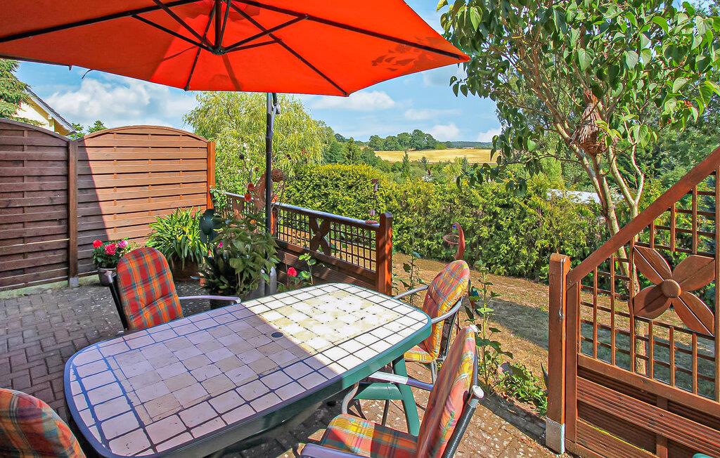 Feriehuset i rustik-romantisk bjælkehyttestil er beliggende separat på ejerens 3000 kvm boligområde i en rolig udkantsbeliggenhed. Fra terrassen har du en smuk udsigt over de ubebyggede omgivelser. Bedste forhold for naturgæster, der søger fred og ro Feriehuset, som blev moderniseret i 2015, er udstyret med stue (polstrede møbler, fladskærms-tv, stereoanlæg, spisebord), soveværelse (2 enkeltsenge, der kan sættes sammen), åbent køkkenalrum (elkomfur, køleskab med fryserum, miniovn , diverse køkkenmaskiner), åben hems (adgang via stige) med to sovemadrasser og badeværelse med brus/toilet. Huset er el-opvarmet (bruser/toilet med gulvvarme) Der er møbleret terrasse, legeplads, opbevaringsplads til cykler og parkeringsplads til rådighed Samlet pris inkluderer sengelinned, håndklæder, slutrengøring samt vand og energi forbrug. Kæledyr: Højst 1 kæledyr er tilladt i denne ejendom (op til en højde på 40 cm). Kargow er et lille samfund i Müritz Nationalpark, som er et af de vigtigste levesteder for sjældne dyr og planter takket være enorme skovkomplekser, mange små søer, enge og hede. I nabobyen Federow (4 km) ligger Müritz National Park Information Center, hvor besøgende blandt andet kan tage direkte del i disse sjældne rovfugles liv via et levende kamera i en fiskeørnebo Fra de mange guidede ture gennem nationalparken, der tilbydes her til Observation af vilde dyr og fugle er særlige højdepunkter ved tranernes rastepladser. Tusindvis af disse "lykkefugle"; stop her i foråret og efteråret. Besøgende kan bruge det veludviklede netværk af cykel- og vandrestier og kombinationen af bus, bådtur og cykel med Nationalparkbilletten; Du kan også selv udforske området glimrende. Ikke langt fra Kargow er kilderne til floderne Peene og Havel. Turistcentret i Mecklenburg Lake District med flere restauranter og indkøbsmuligheder, klimakurstedet Waren (Müritz) ligger cirka 8 km væk og kan også nås med bus.