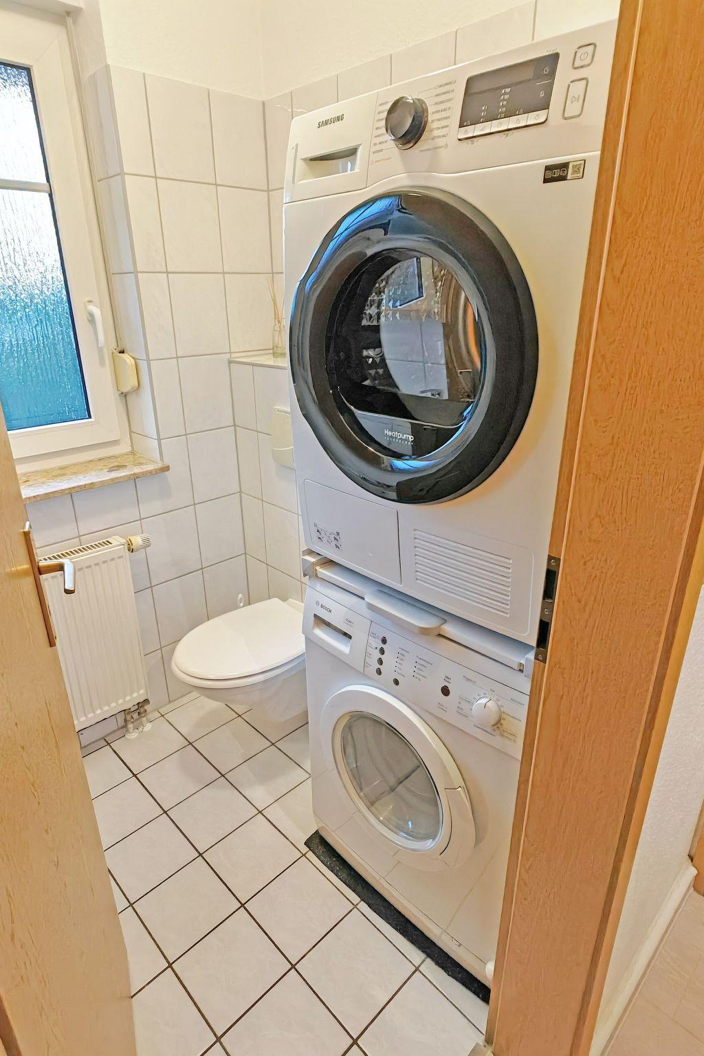 Particularly noteworthy are the terrace in front of the house, surrounded by green hedges, where you can enjoy the afternoon and evening sun and our beautiful, fully fenced garden, where you can enjoy the morning sun at a large, round table for six while having breakfast together.
