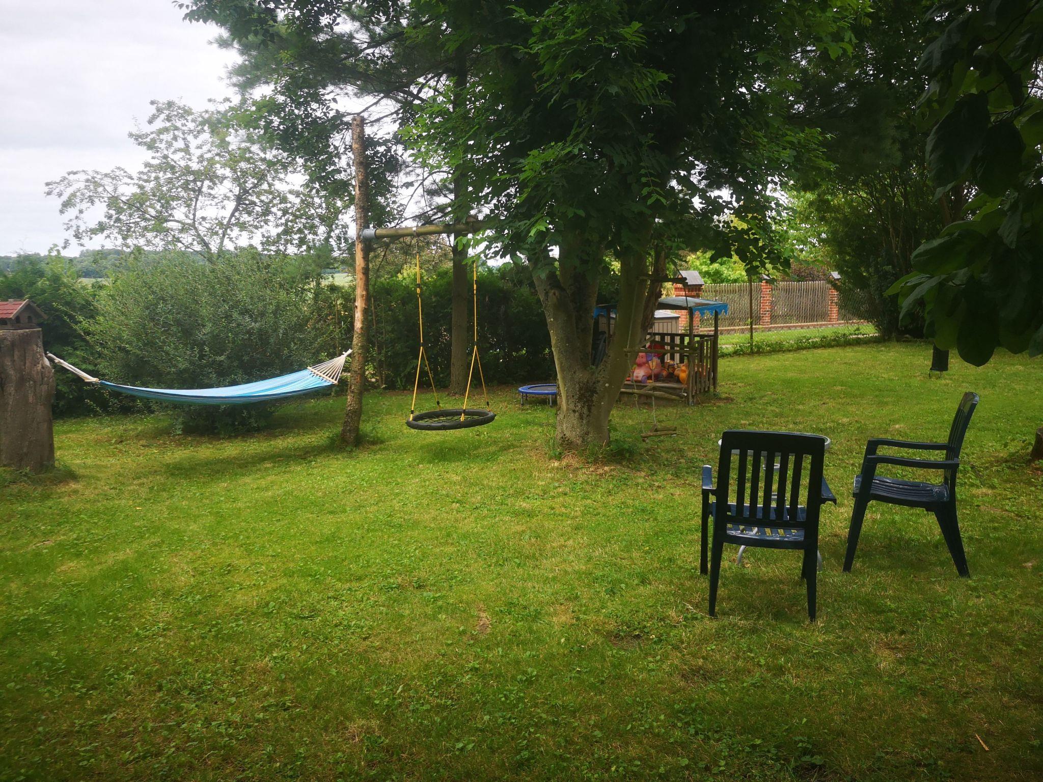 Our holiday flat is very quietly located in a small Mecklenburg village near Waren Müritz. A large garden with opportunities to relax and play for children invite you to linger. The car park is located on the fenced property.