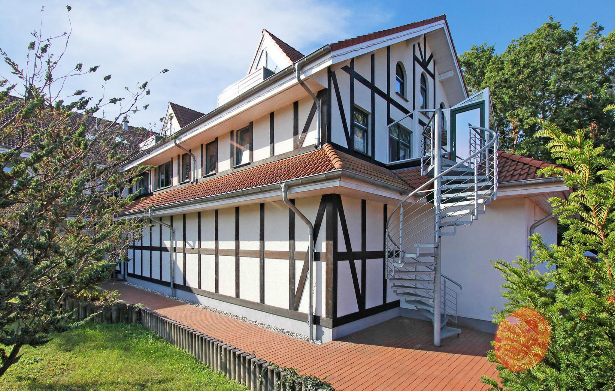 De fem ferielejligheder ligger på øverste etage i et bolig- og erhvervsbyggeri med en central beliggenhed, cirka 500 m fra Østersøstranden. Der er en restaurant, et apotek og en souvenirbutik i bygningen. Adgang til lejlighederne, parkeringspladser, cykelrum og et centralt udendørs opholdsområde med siddepladser og grill er til rådighed for feriegæster i et separat og afgrænset område. Den samlede pris inkluderer vand- og energiforbrug samt slutrengøring. Du skal selv medbringe sengelinned og håndklæder. Husdyr: ÉN lille hund op til en højde på 30 cm er tilladt i denne ejendom. Denne lejlighed har en størrelse på cirka 50 kvadratmeter og er velegnet til op til 4 personer. egnet. Det har en stue (polstret opholdsområde med sovesofa, spiseplads, TV, radio), tekøkken med el-komfur, soveværelse (dobbeltseng, udtræksseng), bruser/toilet, centralvarme. Karlshagen er et feriested ved Østersøen i den nordlige del af øen Usedom. Restauranter, butikker, lystbådehavn med fragtmuligheder og cykelstier ligger i byen. Ridestald, tennis og bowlingbane ca 2,5 km. Stedet har en smuk sandstrand.