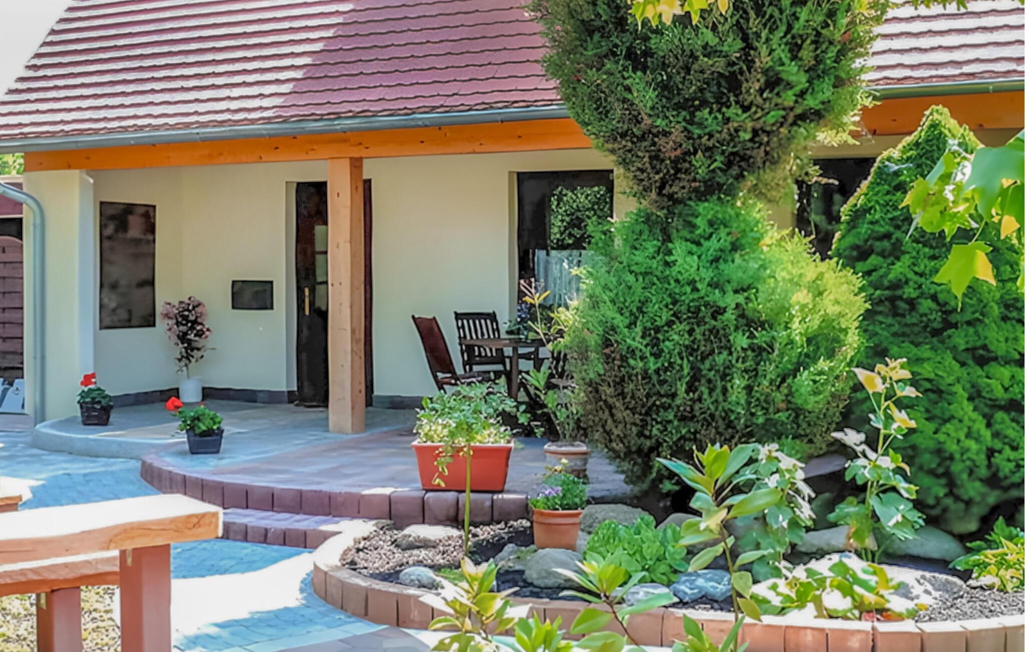 Denne ene af to komfortable ferielejligheder ligger i et feriehus nybygget i 2009 på en 500 kvadratmeter stor fritidsejendom i et roligt udkantsområde. Din ferielejlighed på 50 kvadratmeter ligger i stueetagen. Det har en terrasse og er udstyret med en stue/spisestue (polstrede møbler inklusive sovesofa, spiseplads, satellit-tv, radio, pejs), komplet tekøkken med el-komfur, mikroovn og opvaskemaskine, 2 soveværelser (1 dobbeltseng hver, ekstra rejseseng), bad/toilet og centralvarme. Grillplads, legeplads og parkeringsplads er også tilgængelige. Den samlede pris inkluderer sengelinned, vand, energiforbrug og slutrengøring. Karlshagen i den nordlige del af øen Usedom udviklede sig til et Østersøresort for kun få år siden. Der er forskellige restauranter, butikker, en havn med skibstrafik og en cykelsti i byen. Ridestald, tennis, bowling ca 2,5 km. Dejlig sandstrand. Til stranden ca 2 km, til næste restaurant ca 300 m.