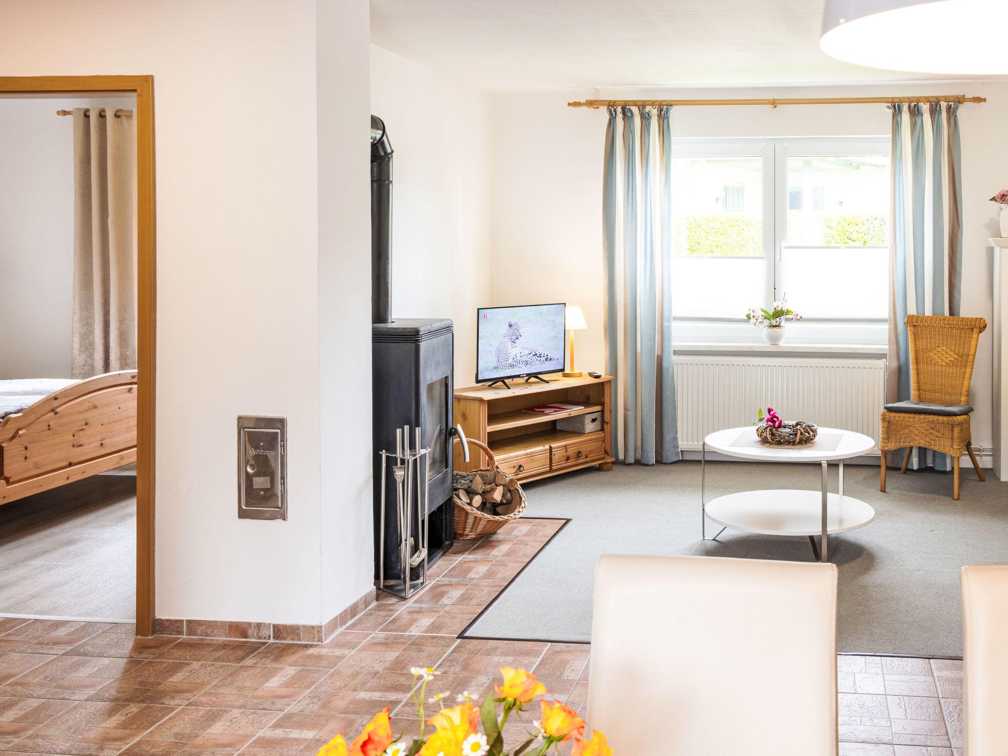 "Morgensonne", 3-room semi-detached house 70 m2. Object suitable for 2 adults + 2 children. Beautiful and cosy furnishings: living/dining room with Scandinavian wood stove and satellite TV (flat screen). Exit to the terrace. 1 room with 1 double bed (180 cm, length 200 cm). 1 room with 2 beds (90 cm, length 190 cm). Open kitchen (4 hot plates, oven, dishwasher, toaster, kettle, microwave, electric coffee machine) with dining table. Exit to the terrace. Shower/WC. Terrace. Terrace furniture. Facilities: children's high chair, baby cot, hair dryer. Internet (WiFi, free). Parking (1 car). Please note: suitable for families. Non-smokers only. Maximum 1 pet/ dog allowed. Private entrance, smoke alarm.
