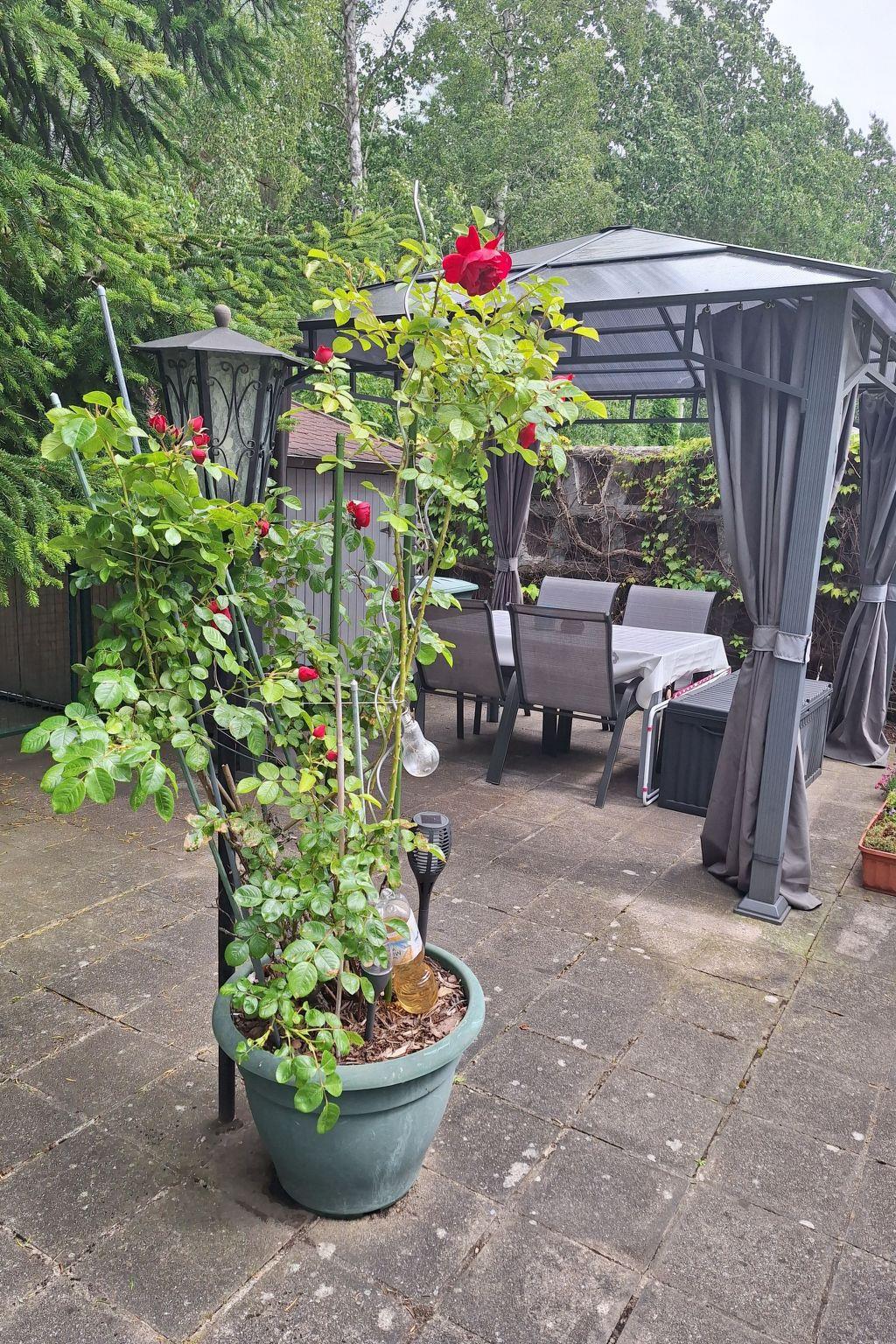 The holiday home is located on a spacious 1000m² plot right on the edge of the forest, where peace and relaxation are paramount. A large, covered terrace and a separate sun terrace are at your exclusive disposal. Both terraces are furnished and promise private hours in the open air. Barbecue fans have the option of using an electric barbecue. You can park your car right next to the holiday home.