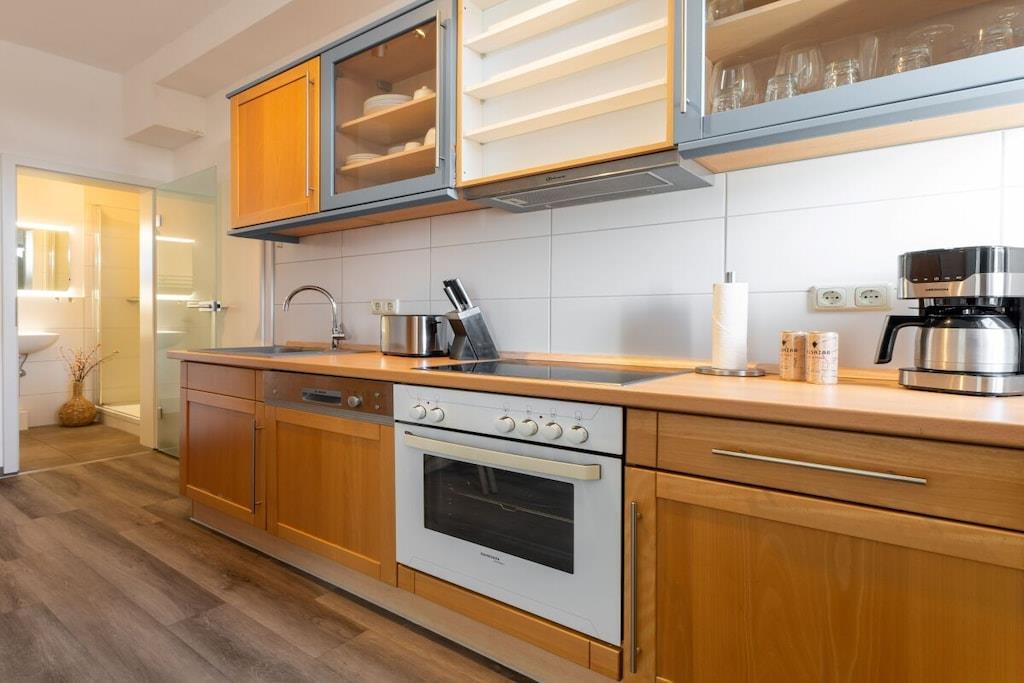Sie möchten zur Ruhe kommen und sich auf die wichtigen Dinge besinnen? Es erwartet sie die in 2021 sanierte Ferienwohnung Frühling im Ostseebad Karlshagen, die auf 55 qm zum Entspannen und Genießen einlädt. Zu zweit, mit Kindern oder Freunden – bis zu vier Personen (Doppelbett (2x90x200) im Schlafzimmer, ein Doppellbett (140x200) in der Veranda) finden bei uns Platz. Beginnen Sie Ihren Urlaubstag doch mit einem leckeren Frühstück und heißem Kaffee auf der Terrasse. Wie wäre es anschließend mit einem ausgiebigen Spaziergang? Sie können wählen. Von unserer Villa Vierjahreszeiten können sie landeinwärts durch die Wälder spazieren oder in 15 min am kilometerlangen Sandstrand der Ostsee sein.