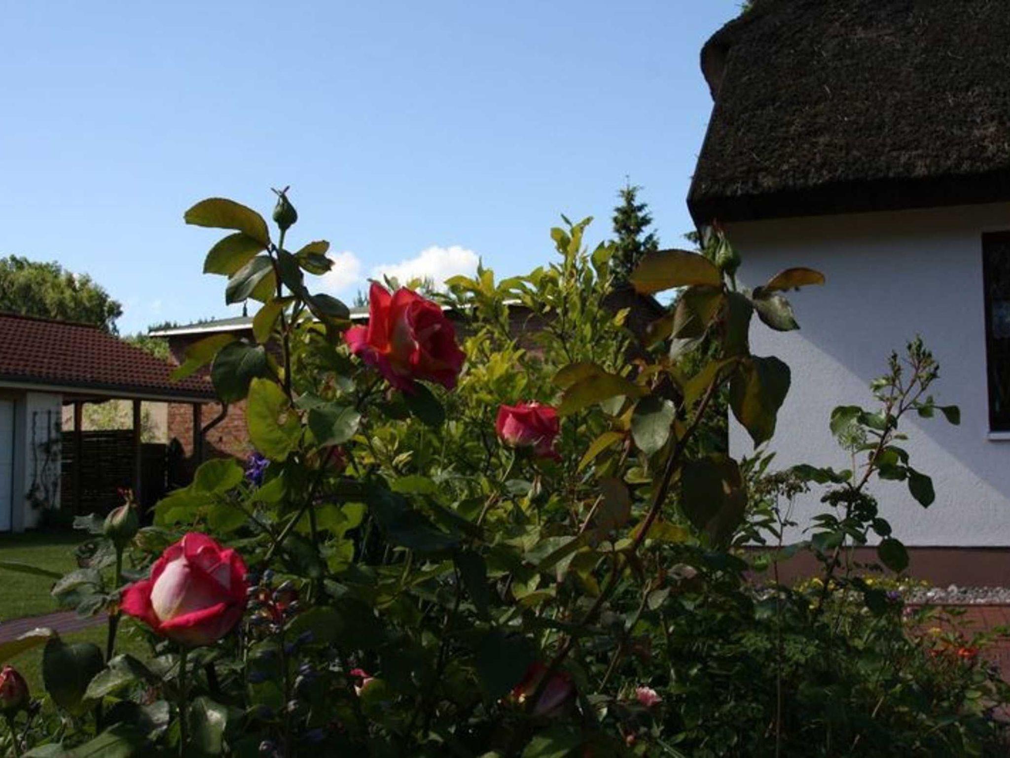 Das voll sanierte alte Reetdach - Fischerhaus Baujahr 1857 verfügt über vier gemütliche Ferienwohnungen mit Südterrasse und Liegewiese inmitten alter Bäume. Im Jahr 2021 erhielt das Gebäude ein neues Reetdach.