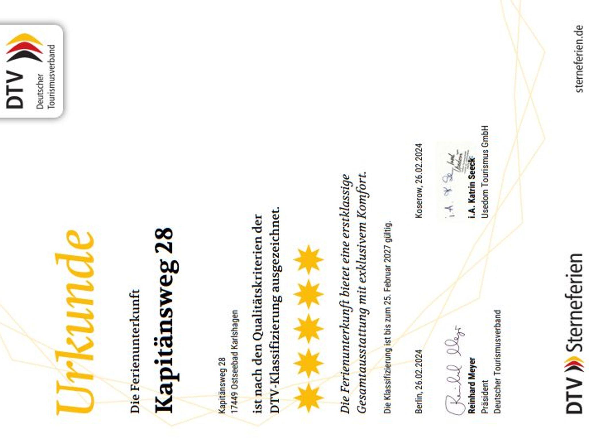 5-Sterne-Klassifizierung durch den Deutschen Tourismusverband
