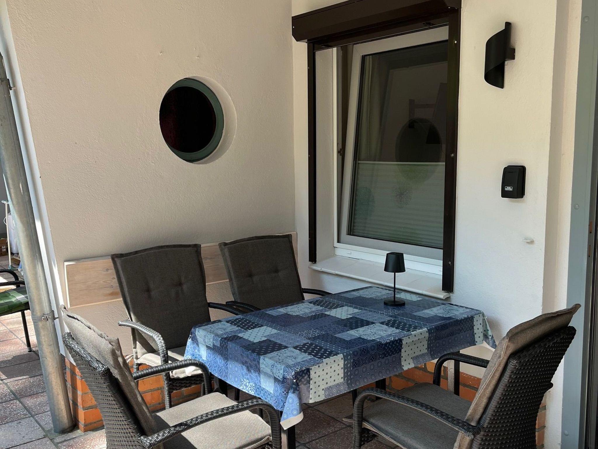 Überdachter Außenbereich mit Sitzmöglichkeit für vier Personen, Grillmöglichkeit vorhanden,